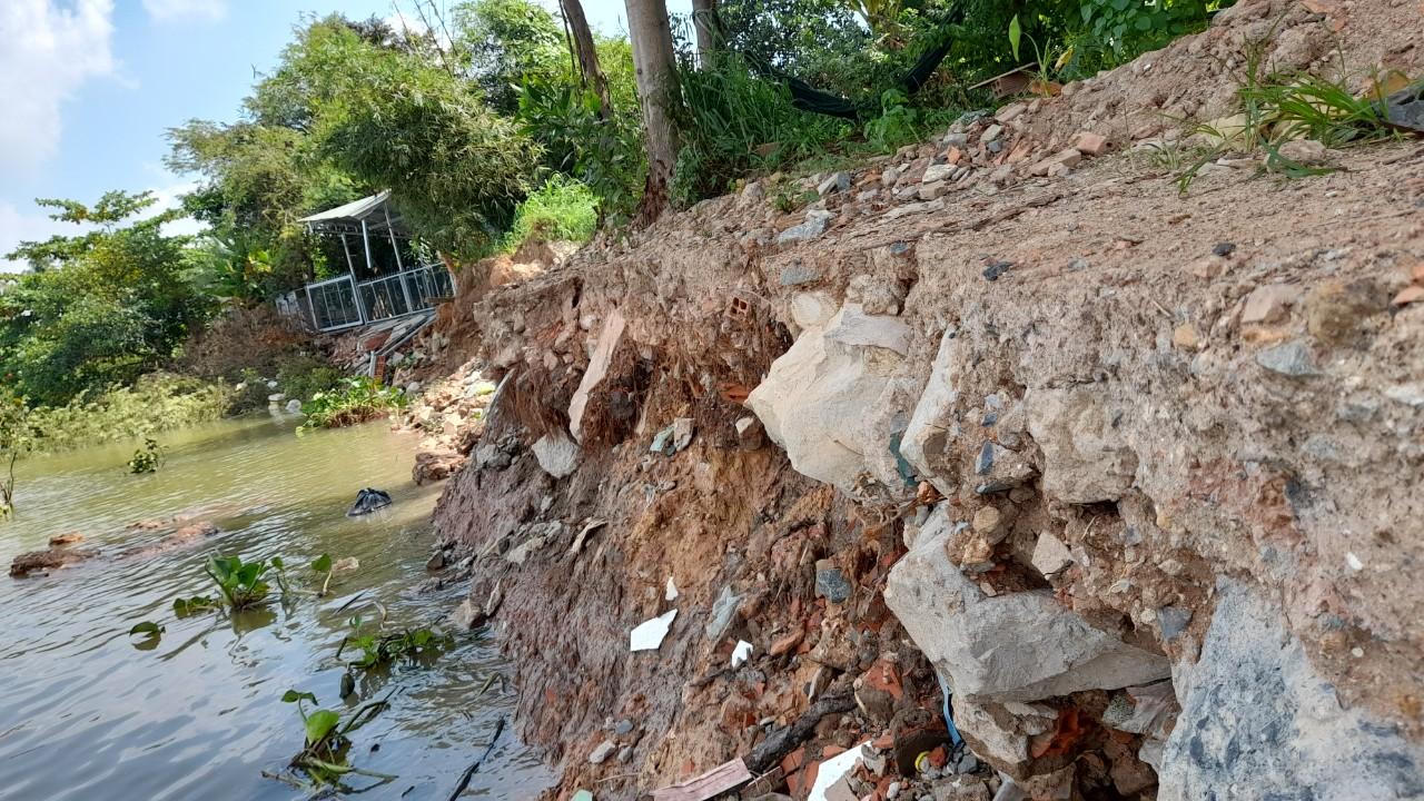 Theo người dân nơi đây, vốn dĩ con đường ven sông mà mọi người qua lại nằm gần giữa dòng sông hiện tại, nhưng đã bị bào mòn và sạt lở đất quá nhiều theo thời gian. Đất đã lở vào phần đất của một số hộ dân được ghi nhận trên Giấy chứng nhận Quyền sử dụng đất, có nơi tới tận 30m, chưa kể phần đất ranh bảo vệ sông.