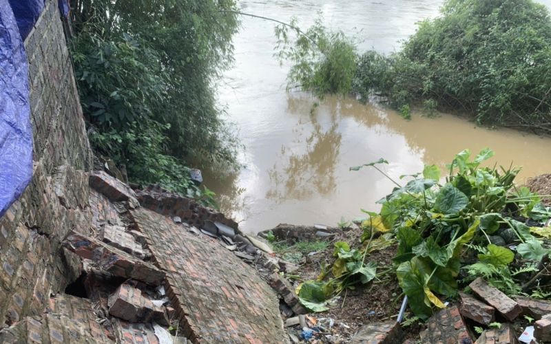 Sạt lở bờ sông và nhiều công trình công cộng ở huyện Phú Bình do mưa lớn