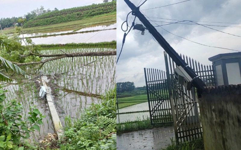 | Một số cột điện hạ thế bị đổ gây thiệt hại khoảng 40 triệu đồng. Nguồn ảnh: Phòng NN&PTNN huyện Phú Bình |