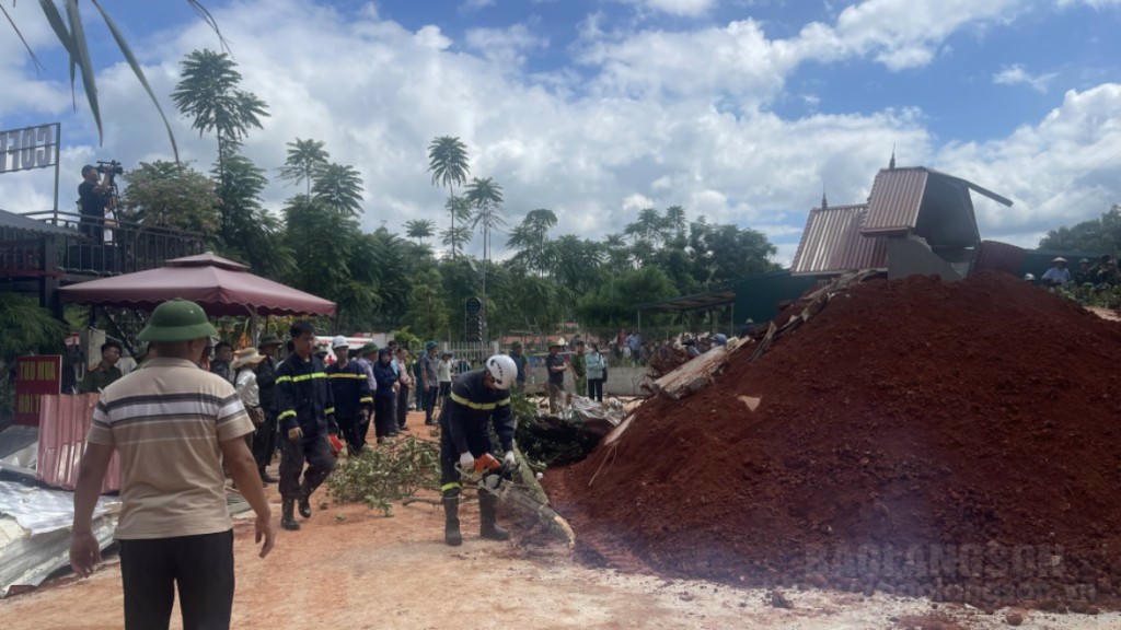 Ngay sau khi nhận được tin báo, các lực lượng chức năng và người dân nhanh chóng có mặt để đào bới đất và hỗ trợ tìm kiếm. Dù rất cố gắng và nhanh nhất để đào bới lượng đất sạt lở ra khỏi căn nhà, nhưng phép màu đã không xảy ra. Đến khoảng 10h sáng, lực lượng chức năng đã tìm thấy thi thể của cặp vợ chồng trên.