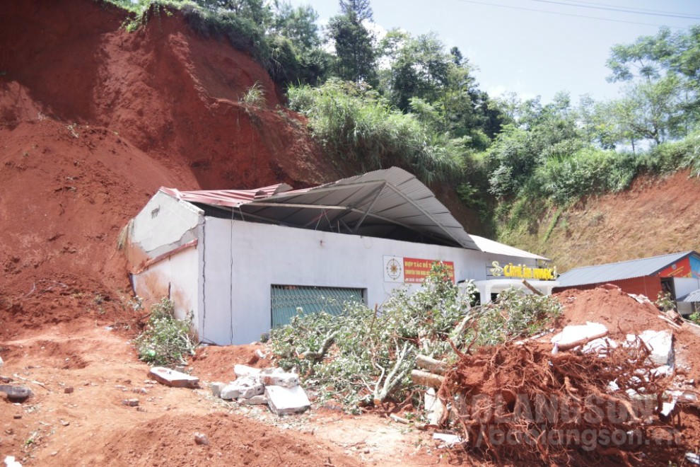 Một phần khu vực kinh doanh cà phê của gia đình cũng bị đất đá vùi lấp. (Ảnh Báo Lạng Sơn) |