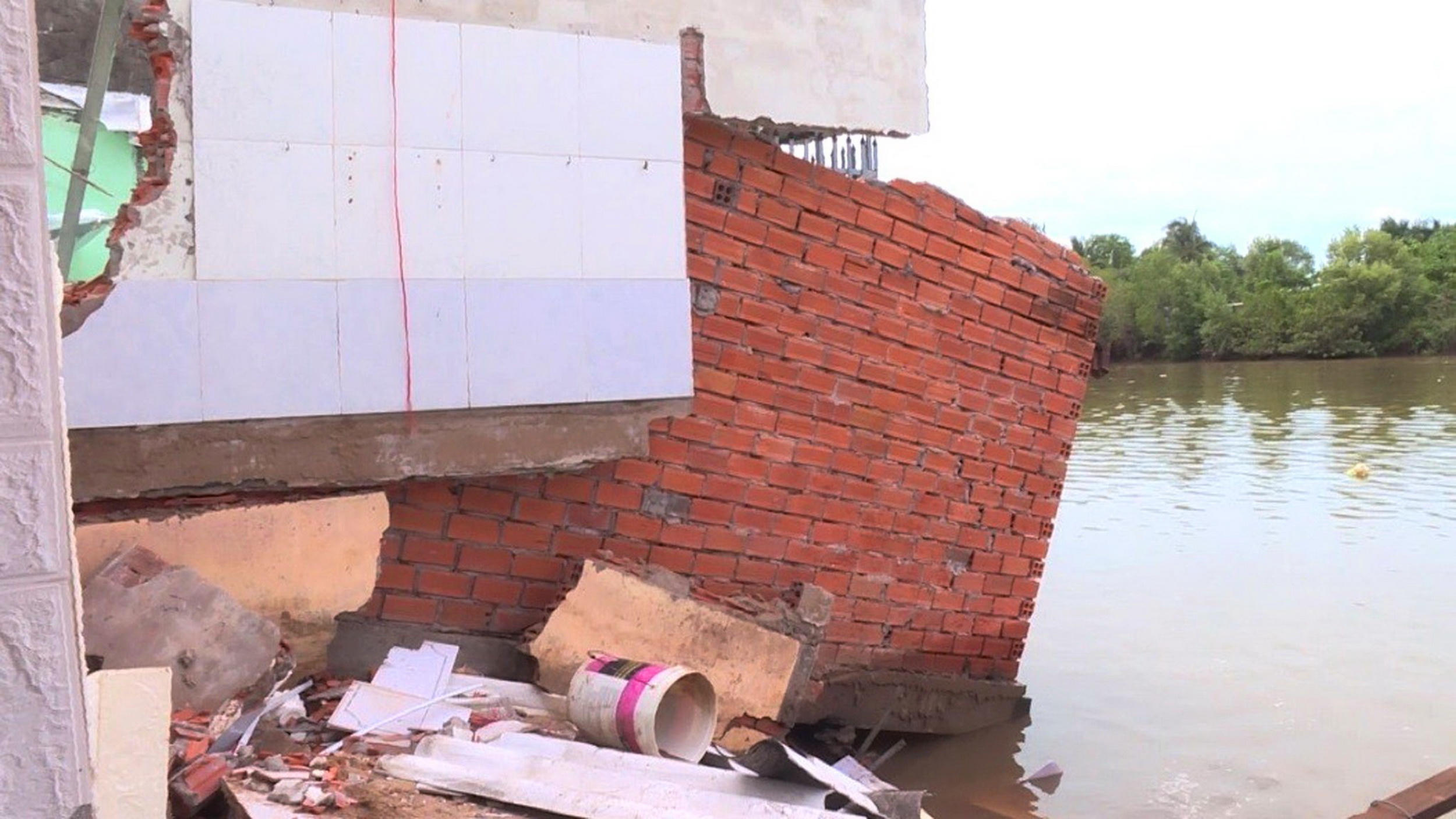 Sạt lở đất làm nhiều nhà dân ở Bạc Liêu sụp một phần xuống sông