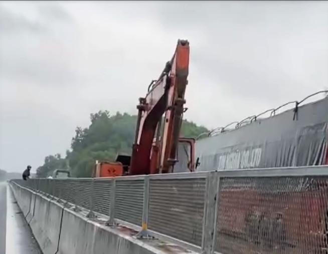 Mưa lớn kéo dài gay sạt lở tại tuyến đường cao tốc Đà Nẵng- Quảng Ngãi, đoạn Km76+900, lực lượng chức năng đang khắc phục tuyến đường này |