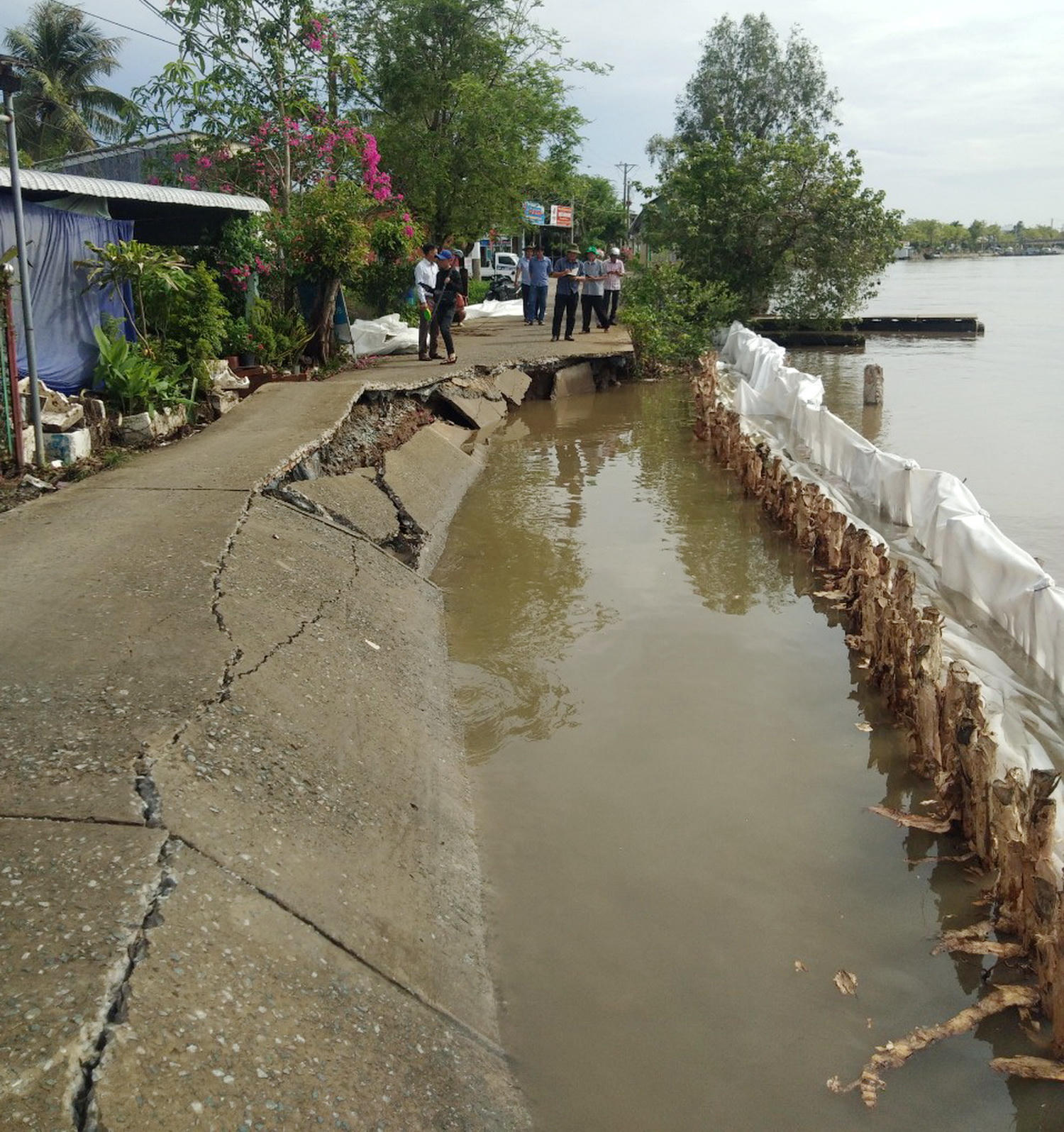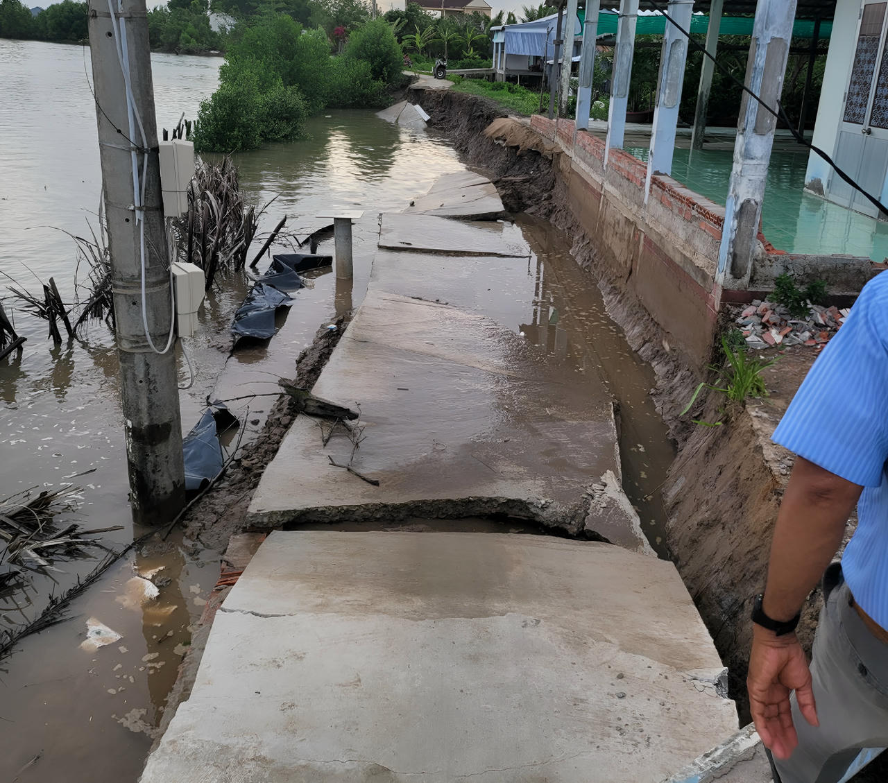 Tính từ đầu năm 2023 đến nay, trên địa bàn huyện Đầm Dơi (tỉnh Cà Mau) xảy ra 97 sạt lở, sụt lún đất ven sông, làm hư hỏng hoàn toàn 106 mét kè bê tông, sập hoàn toàn 15 căn nhà, hư hỏng 4 căn nhà… ước tính tổng thiệt hại trên 5 tỷ đồng.