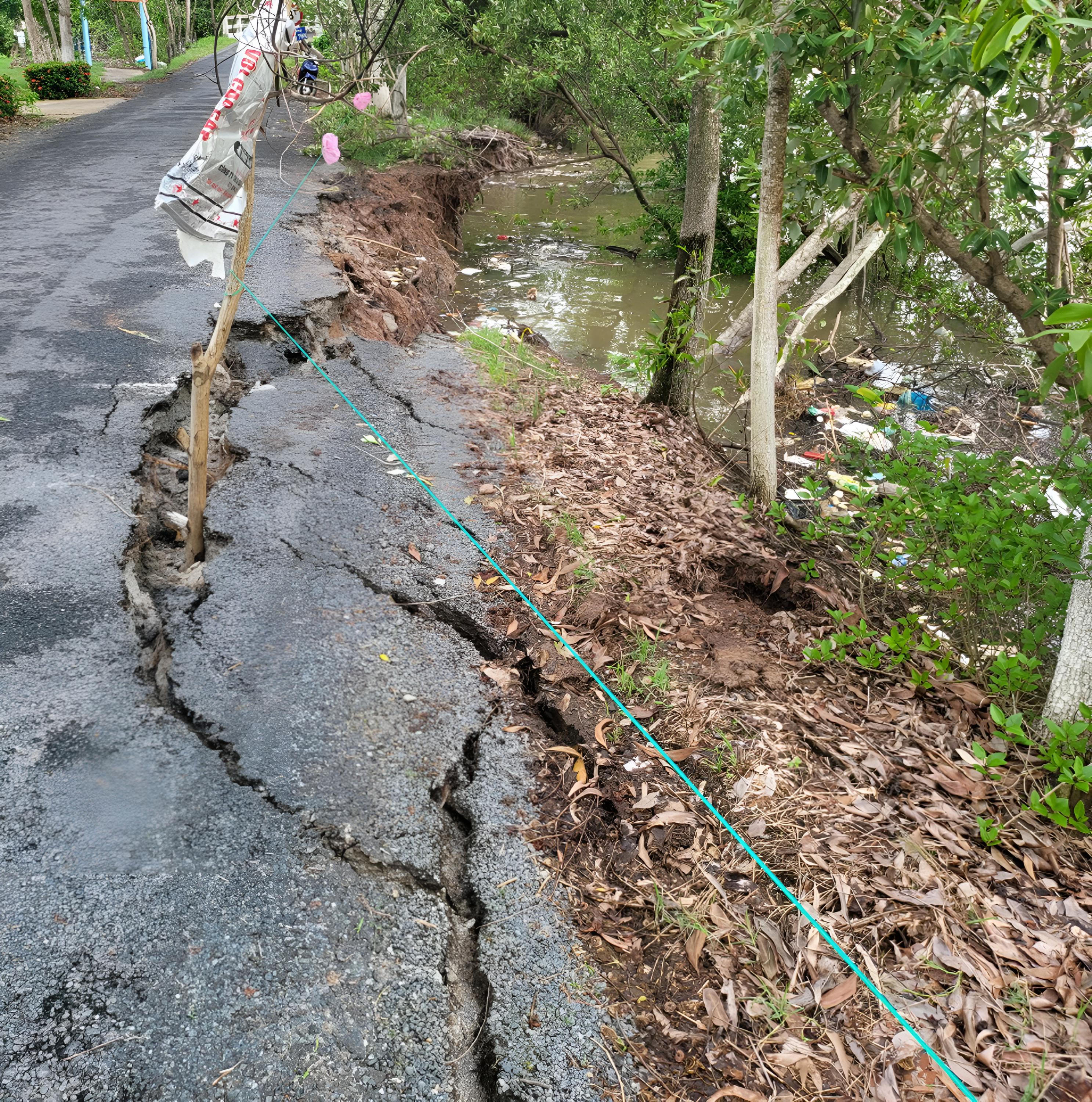 Nhiều tuyến đường trên địa bàn huyện Đầm Dơi (tỉnh Cà Mau) bị sạt lở nghiêm trọng. |