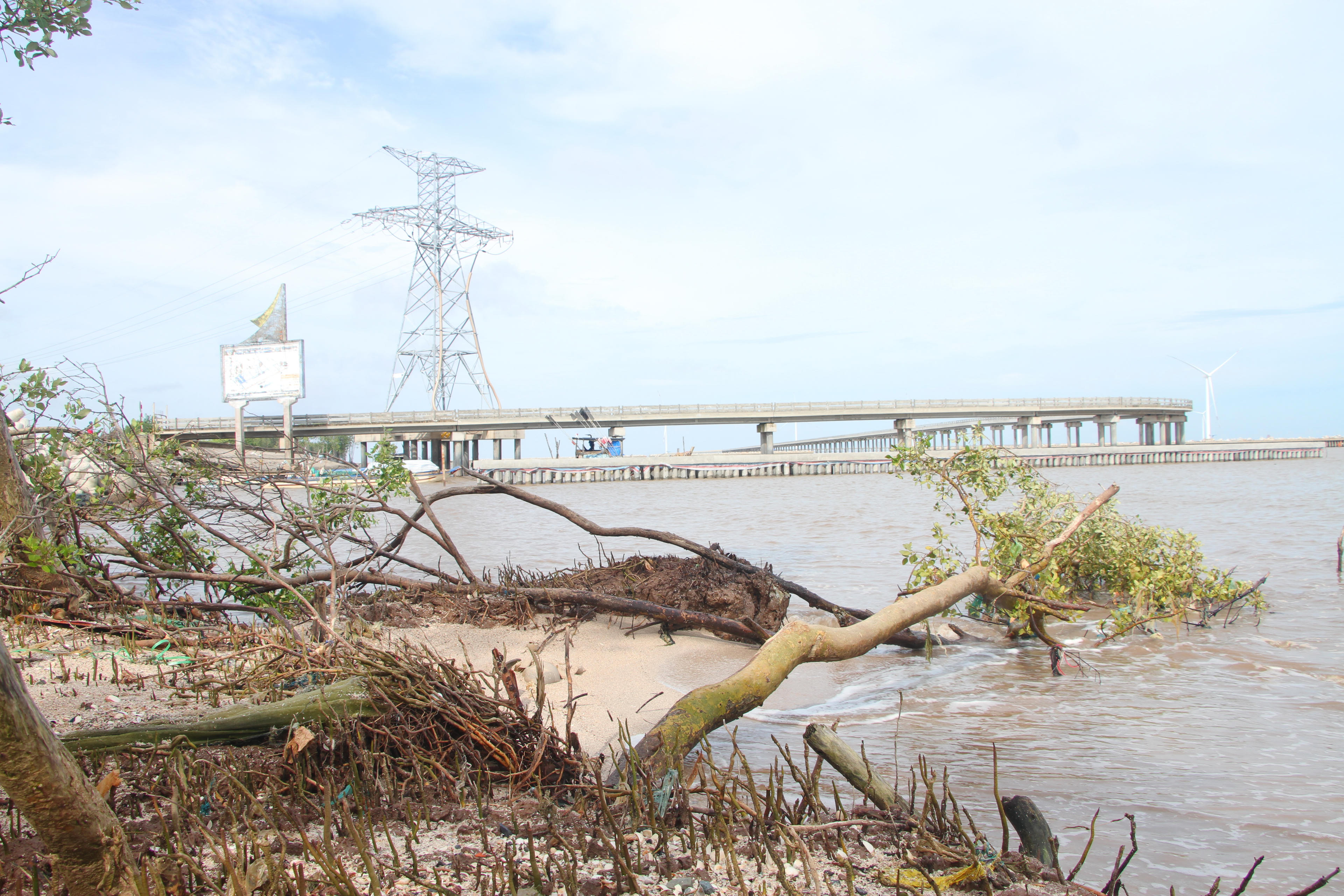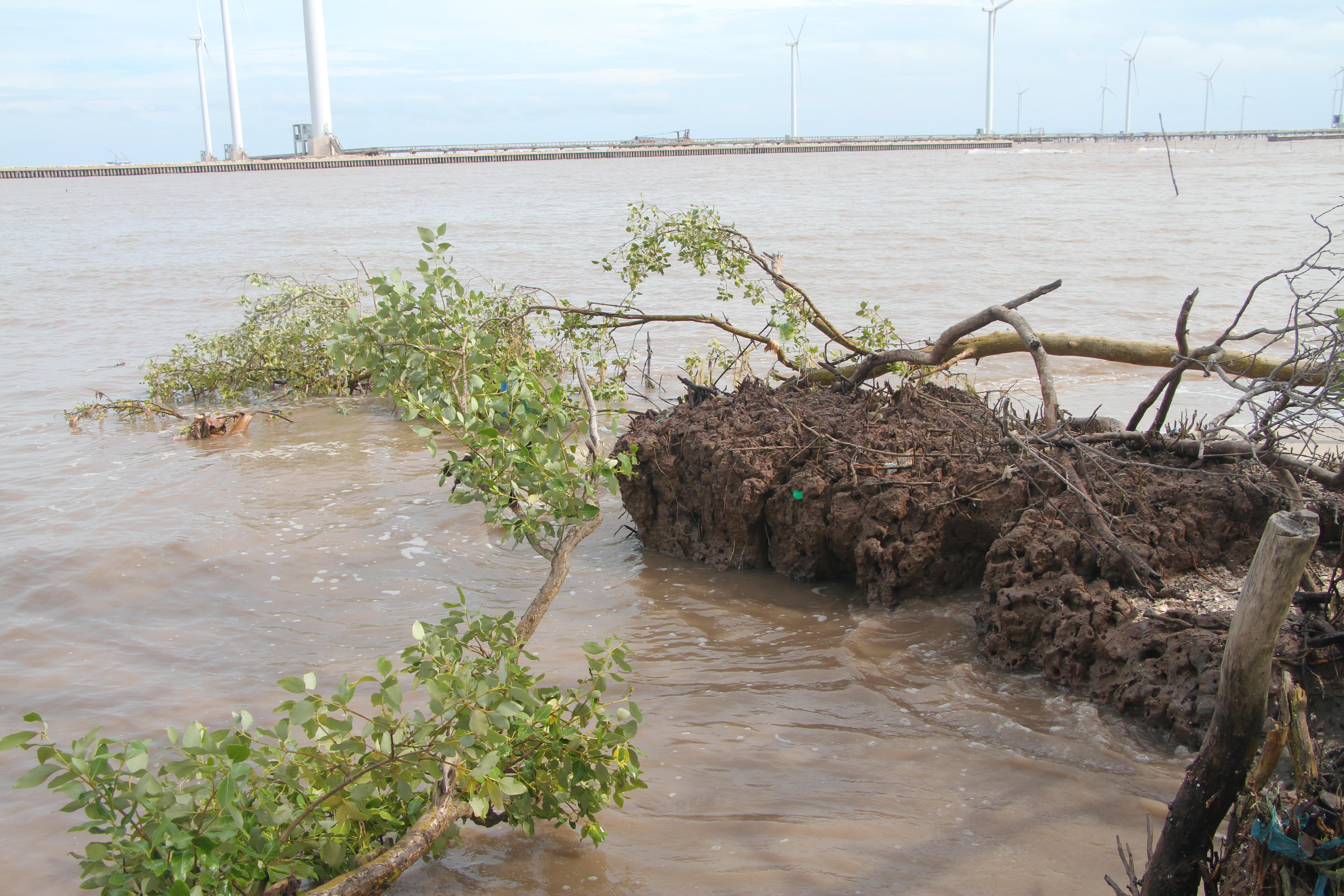 “Trong thời gian tới, do khu vực bị sạt lở không còn nhiều rừng phòng hộ nên khi triều cường dâng cao kết hợp với sóng to, nguy cơ gió mạnh sẽ tiếp tục đánh trực tiếp vào thân đê, gây sạt lở mái đê và thân đê ngày càng nghiêm trọng hơn. Nhất là vào mùa gió chướng, khi triều cường dâng cao kết hợp gió mạnh tạo thành các con sóng lớn làm nước biển tràn qua đê, chảy vào khu vực sản xuất và nhà dân ở phía trong.
