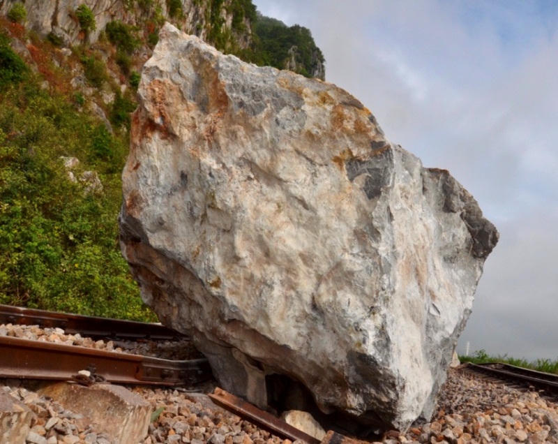 Khoảng 2h30 hôm nay, 10/7, sau trận mưa lớn, những khối đá có tổng khối lượng nặng hàng trăm tấn từ ngọn núi phía Bắc nhà ga Lạc Sơn, huyện Tuyên Hóa (Quảng Bình) sạt lở, đổ ập xuống tuyến đường sắt qua đoạn này. Trong 3 tảng đá lớn bị sạt xuống, tảng lớn nhất ước tính khoảng gần 30 khối.