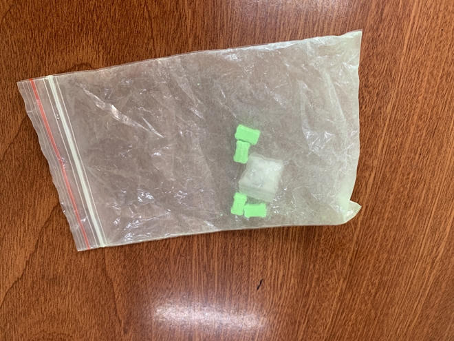 Tang vật thu tại hiện trường gồm: 4 viên nén màu xanh (nghi là MDMA), 4 bịch nilon chứa chất bột màu trắng (nghi là Ketamin) cùng 1 chiếc điện thoại di động.