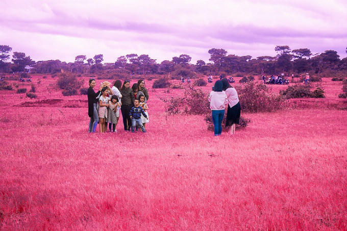 Dù mới được phát hiện từ năm ngoái và được nhiều người để mắt tới từ năm nay nhưng khu vực cỏ hồng ở Gia Lai đã rất thu hút khách du lịch vào mỗi dịp cuối tuần. Nhiều gia đình có con nhỏ hoặc nhóm bạn cũng ghé qua đây để chụp ảnh và tận hưởng không gian trong lành tại vùng rừng núi tươi đẹp này.