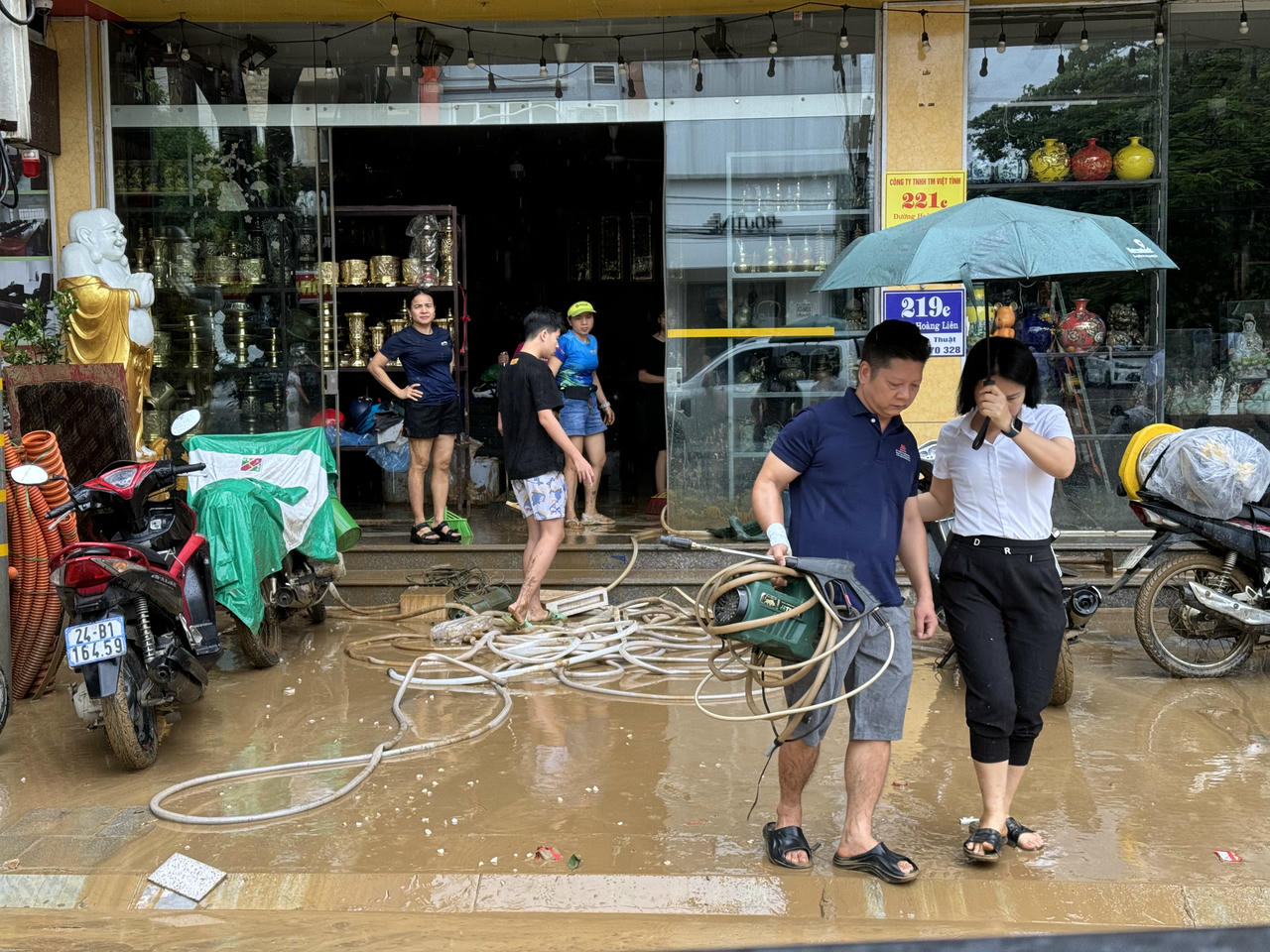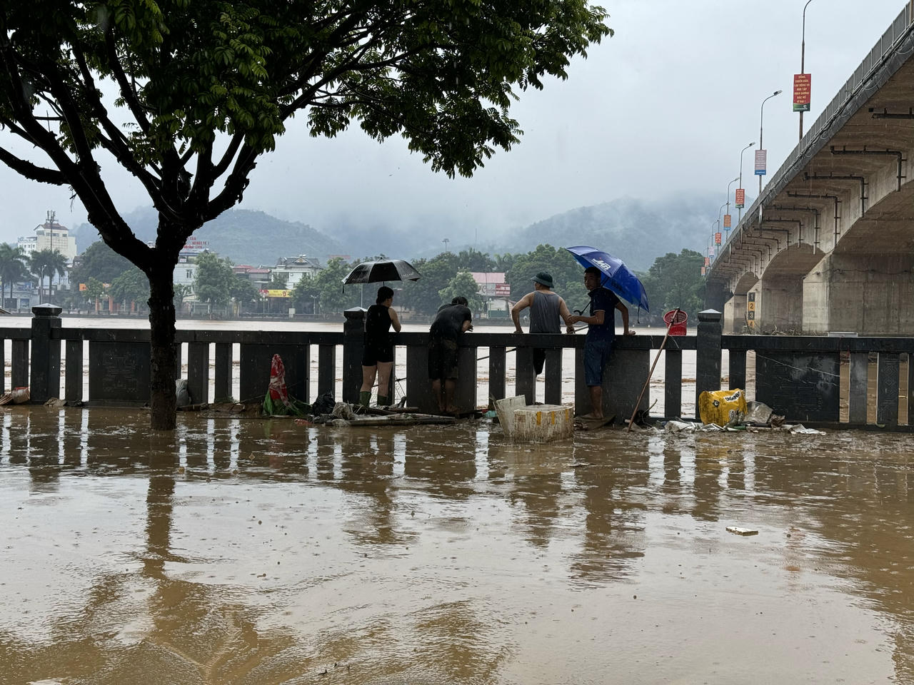 Tỉnh Lào Cai cũng chỉ đạo các địa phương khẩn trương huy động lực lượng dân quân tự vệ, đội xung kích phòng chống thiên tai, cán bộ nhân viên tham gia dọn vệ sinh các đường, tuyến phố.