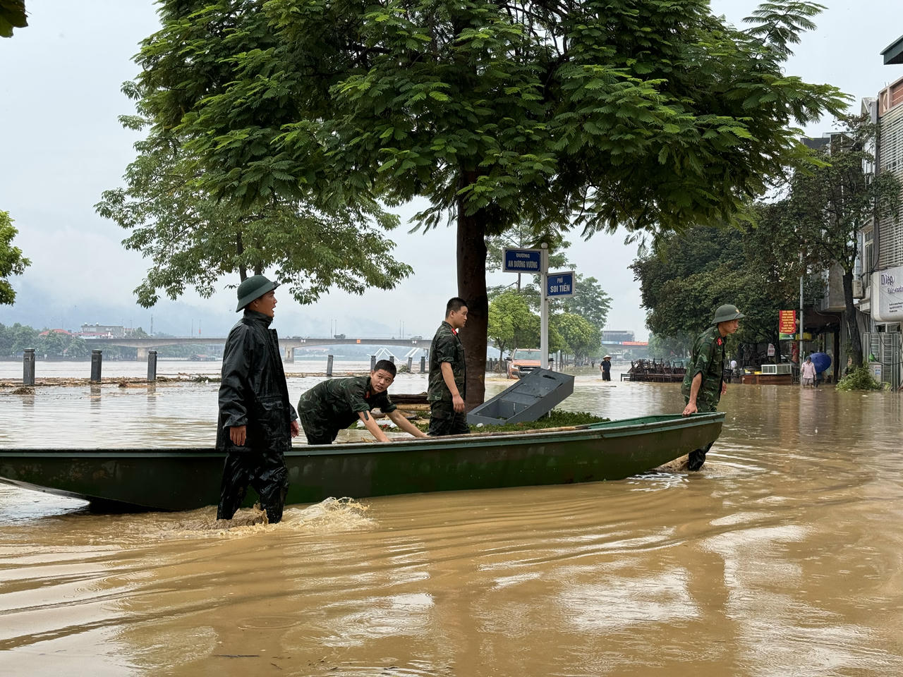 Lực lượng Quân đội được huy động để cùng người dân khắc phục hậu quả sau lũ.