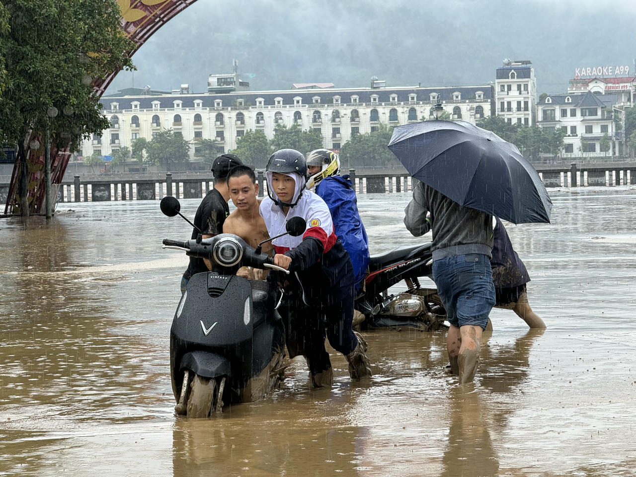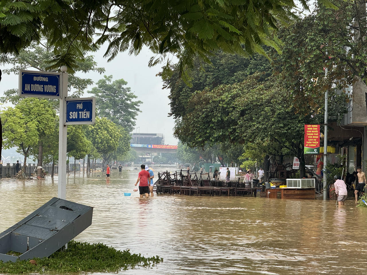 Đến 8h ngày 10/9, tình hình ngập lụt tại thành phố Lào Cai giảm so với ngày 9/9 nhưng các tuyến phố, đường vẫn ngập 0,5-2m, giao thông đi lại khó khăn. Mưa lớn, ngập lụt làm hư hỏng nhiều tài sản của người dân.