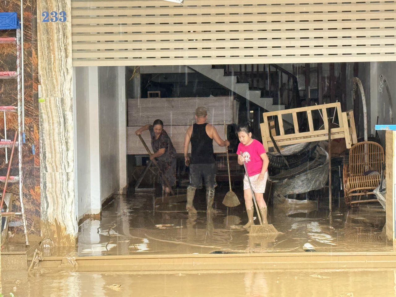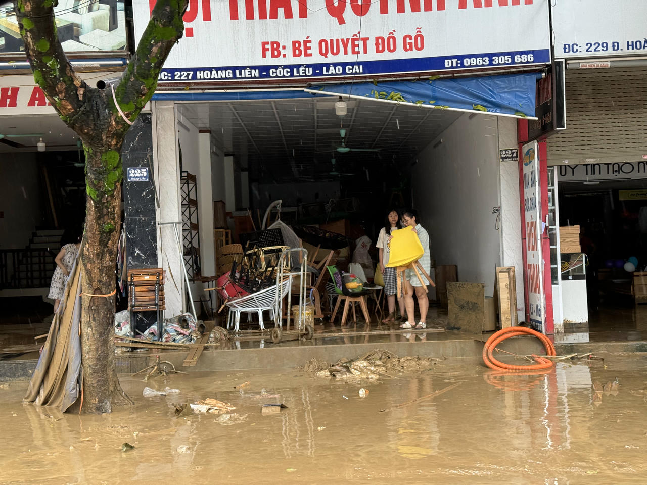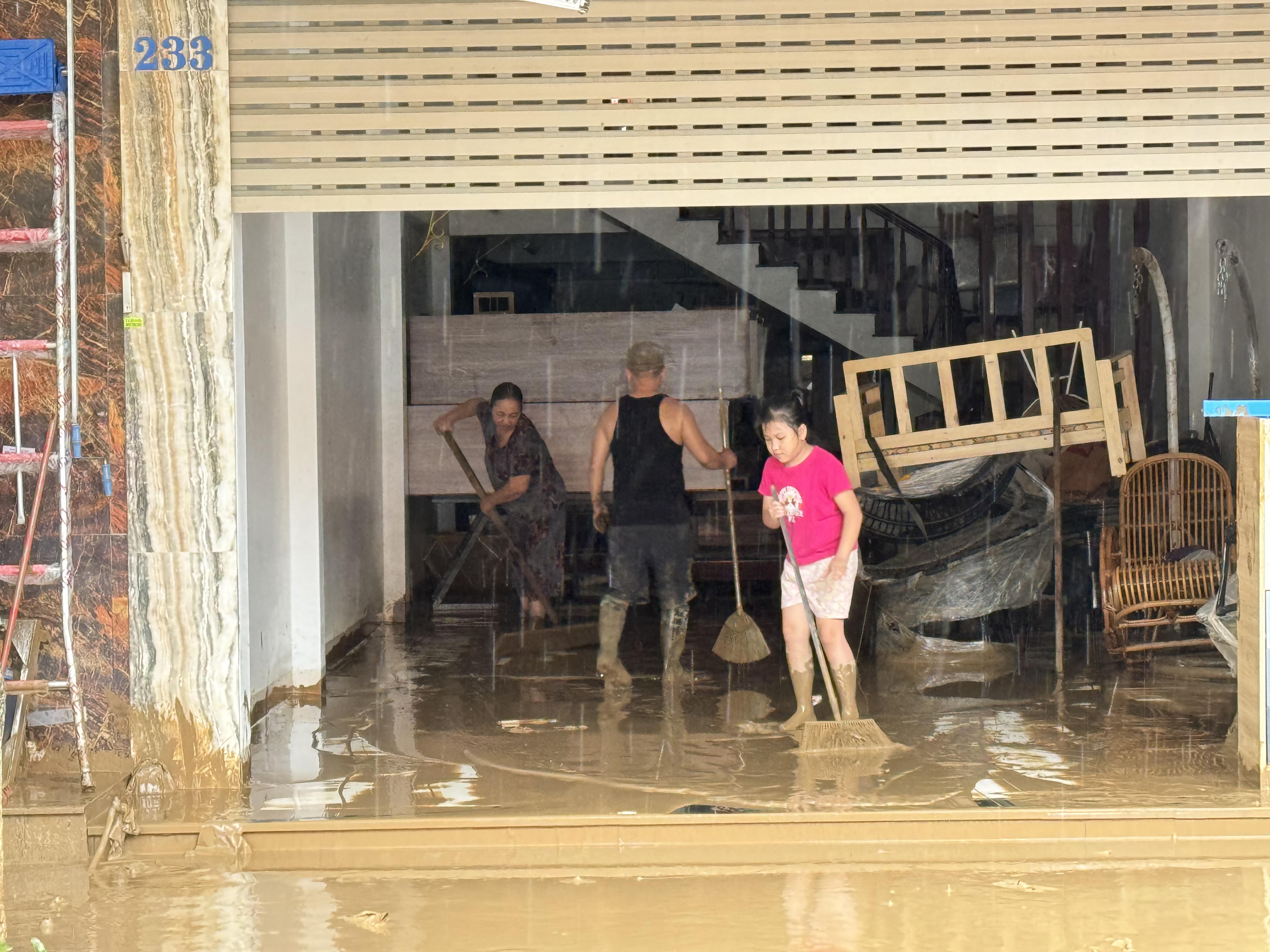 Tại tuyến đường Hoàng Liên, TP Lào Cai, bùn non tràn vào nhà dân rất nhiều.