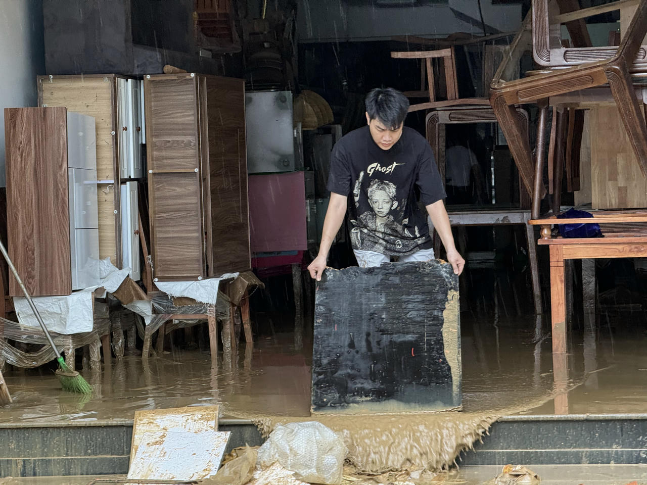 Nhiều tài sản của người dân bị ngập nước.