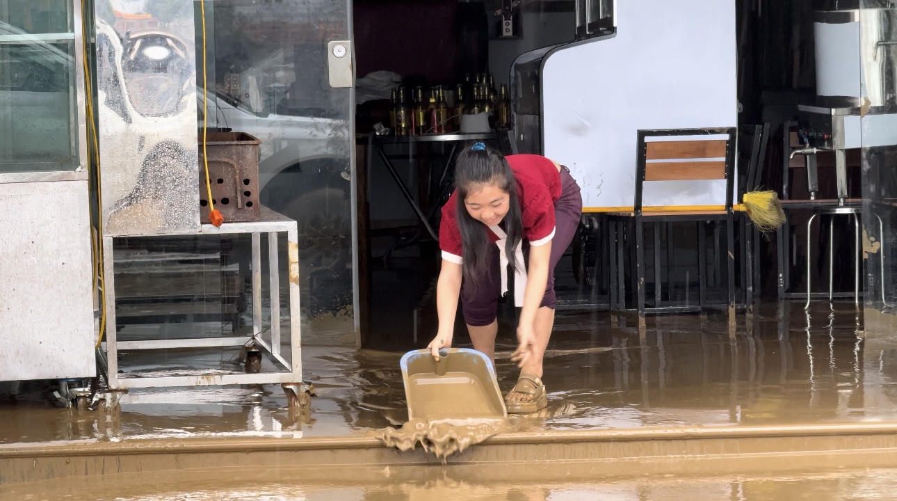 Ghi nhận của phóng viên Báo Pháp luật Việt Nam từ sáng sớm 10/9, bên nhiều tuyến đường, khu phố của thành phố Lào Cai, người dân đã tất bật dọn dẹp nhà cửa sau khi lũ rút.