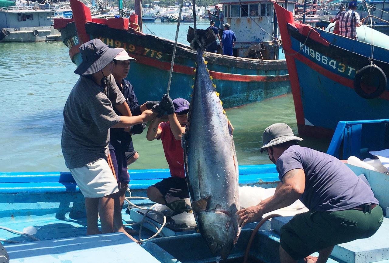 Ngư dân Nam Trung bộ bốc dỡ cá lên bờ sau một chuyến biển. |