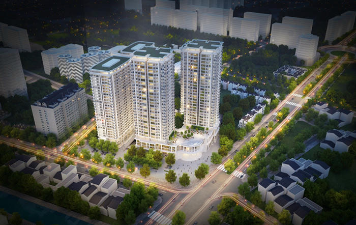 Thứ hai, giải pháp an toàn PCCC: Trên đường giao thông bố trí các khoảng trống có chiều rộng 6x12m và khoảng cách từ mép của khoảng trống này đến tường nhà 8m- 10m để xe thang, xe chữa cháy triển khai hoạt động được. Tải trọng của mặt đường bảo đảm cho xe thang, xe chữa cháy có trọng tải lớn triển khai hoạt động. Tầng 15 của nhà được thi công kết cấu sàn dày >200mm, có giới hạn chịu lửa REI180 sử dụng làm sàn ngăn cháy theo chiều đứng bảo đảm yêu cầu kỹ thuật. Cửa đi, cửa sổ, cổng ở tường ngăn cháy là cửa ngăn cháy có giới hạn chịu lửa EI 70. Vách chống cháy tại khu vực thông tầng và thang cuốn thương mại nhà CT1A-CT1B có giới hạn chịu lửa EI 90.