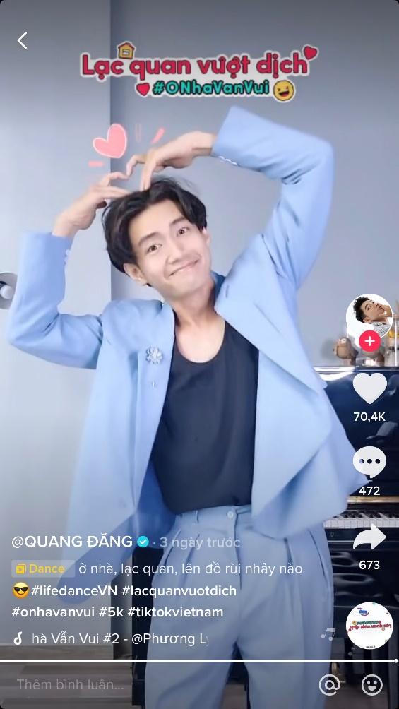 Vũ công Quang Đăng - Cha đẻ “Vũ điệu rửa tay” tham gia thử thách "Lạc quan vượt dịch - Ở nhà vẫn vui". |