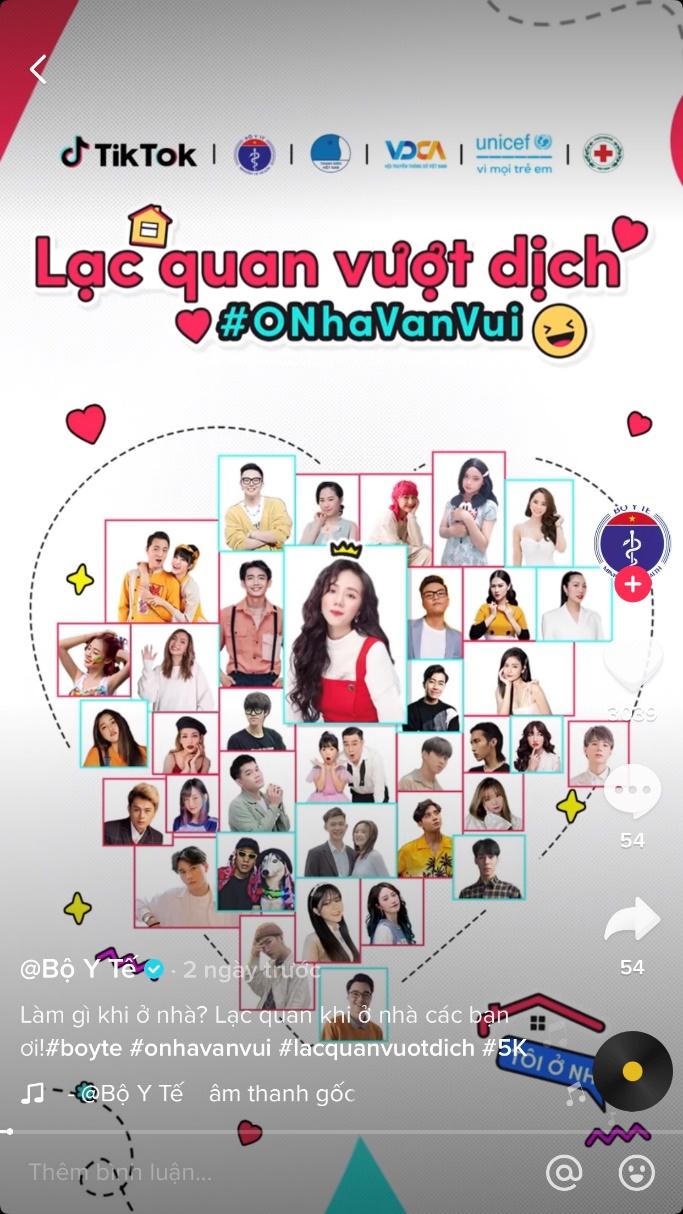 MV ca khúc chủ đề "Lạc quan vượt dịch - Ở nhà vẫn vui" được đăng trên kênh Tiktok của Bộ Y Tế. |