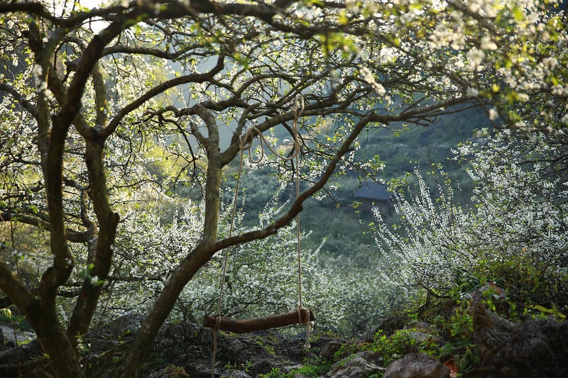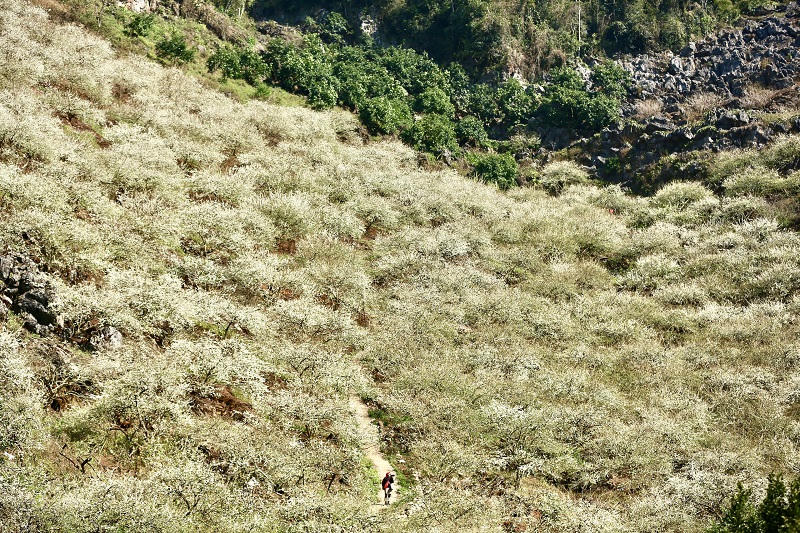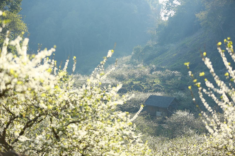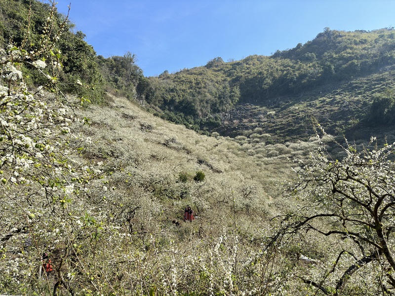 Rừng mận trải dài khắp các triền đồi đến các thung lũng tạo khung cảnh tựa tranh vẽ. |