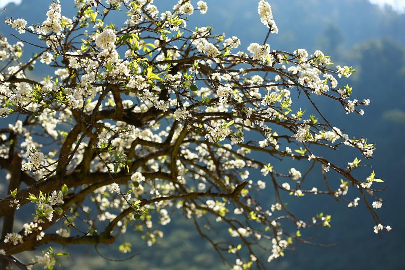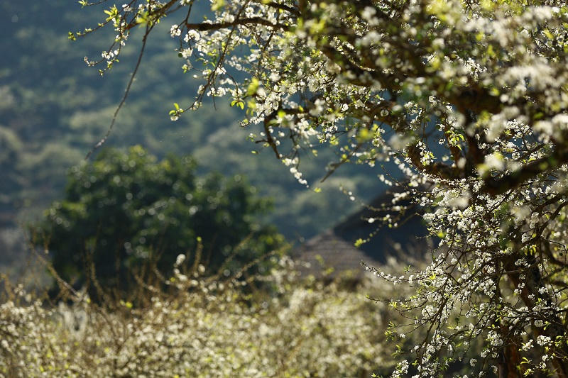 Sắc trắng hoa mận như tiếp thêm sức sống mới trên mảnh đất miền sơn cước. |