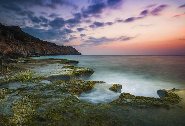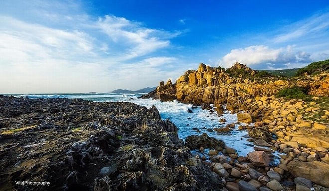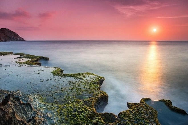 | Có lẽ, hình ảnh bãi Hang Rái lúc bình minh và hoàng hôm được nhuộm màu đẹp nhất. Từng hòn đá nhỏ ở Hang Rái phủ rêu xanh như bước ra từ trong truyện làm mê động lòng người |