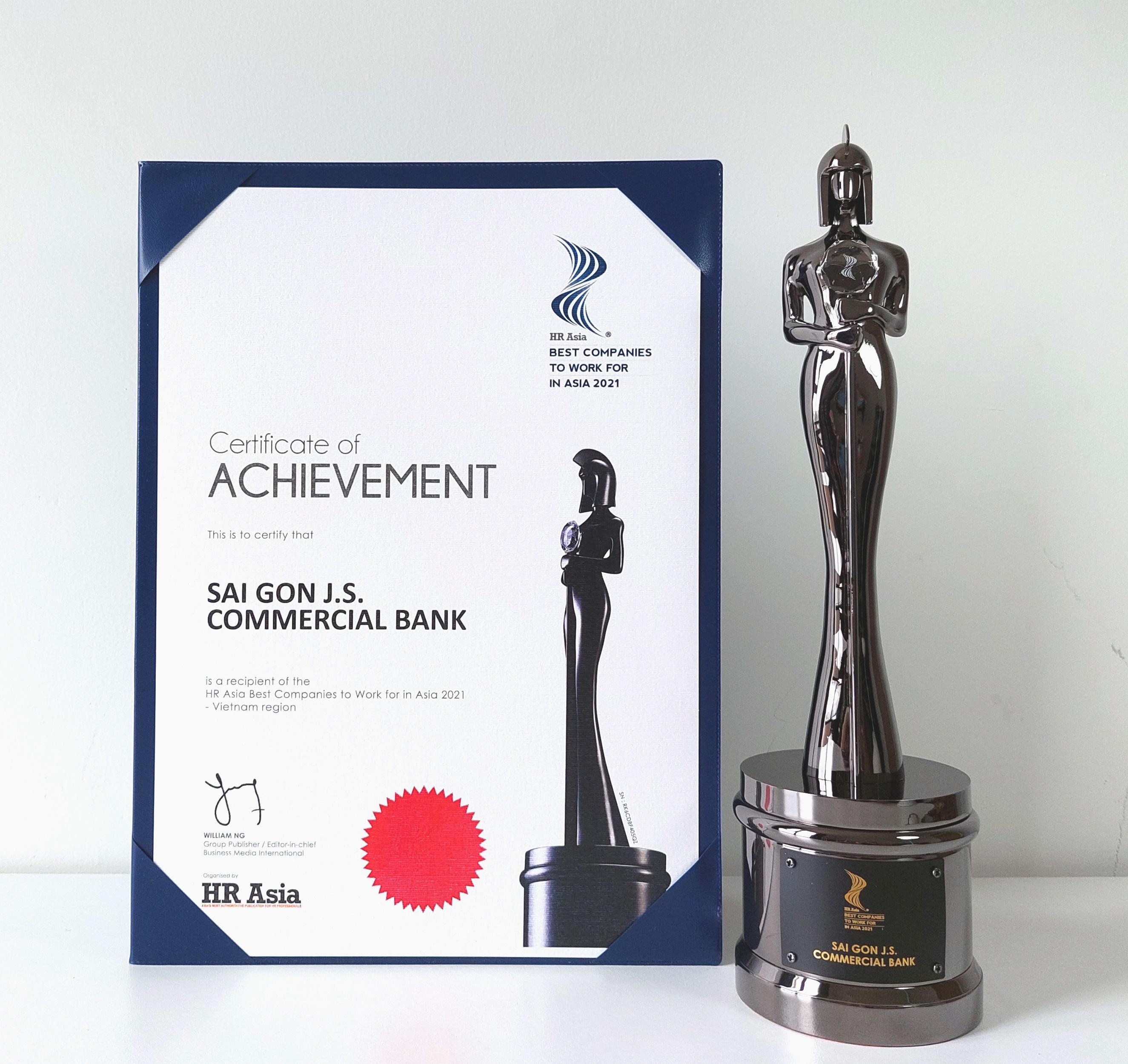 Năm 2021 là năm đầu tiên SCB tham gia và đạt giải thưởng danh giá này. Hội đồng chuyên môn của HR Asia đã thực hiện nghiên cứu và đánh giá chuyên sâu chiến lược nhân sự, chính sách phát triển con người của SCB.