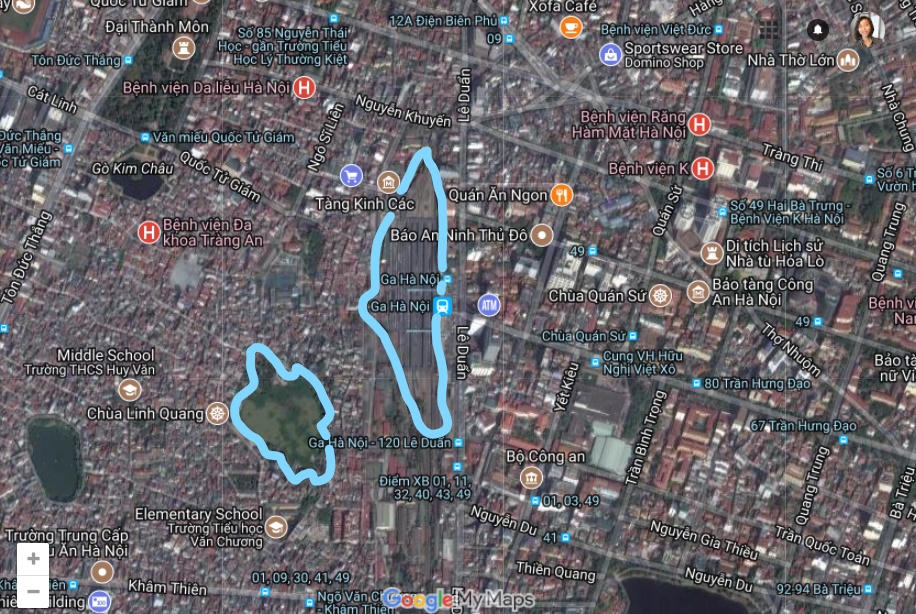 | Ga Hà Nội và chùa Linh Quang trên bản đồ quy hoạch. |