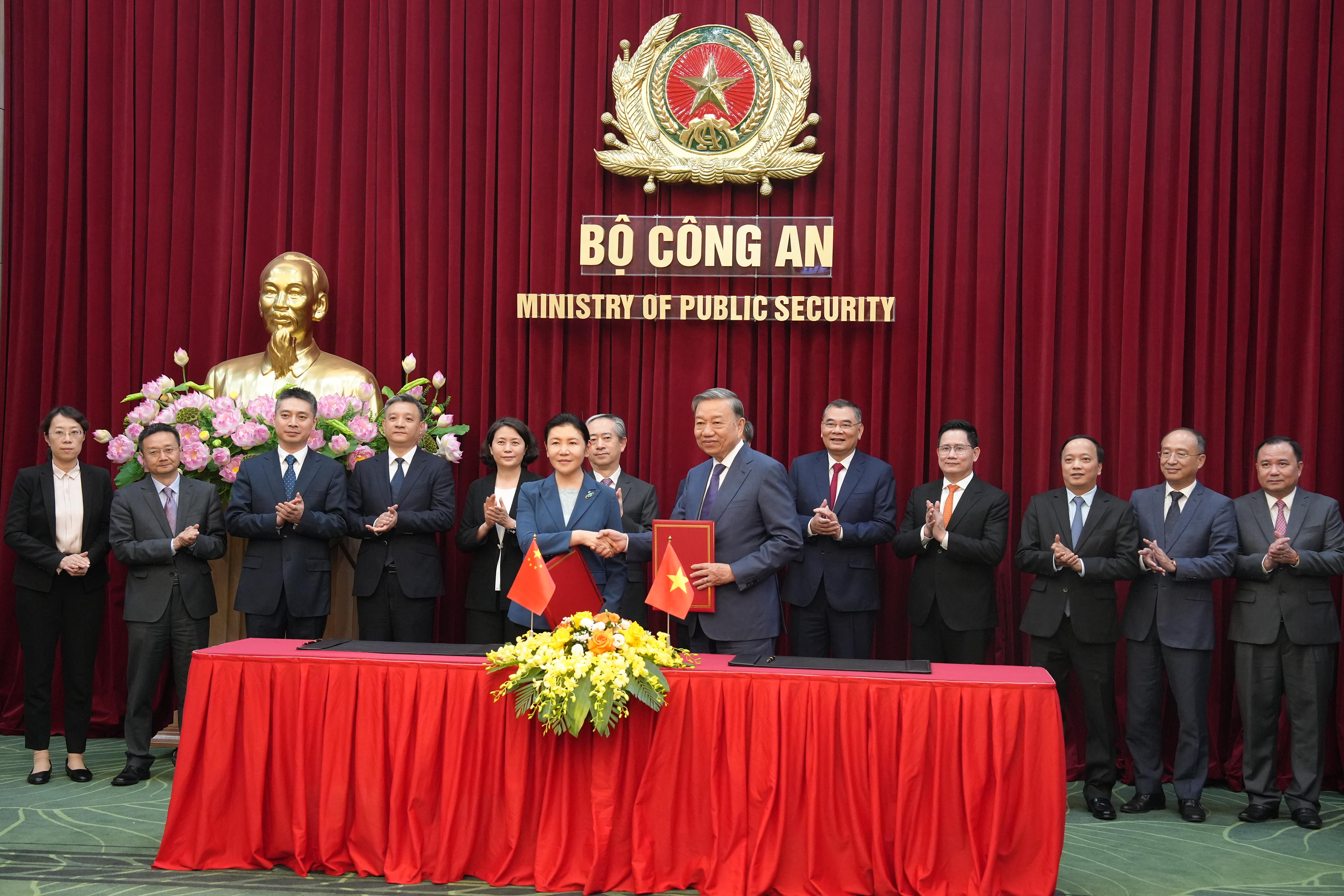 Ngay sau hội đàm, Bộ trưởng Tô Lâm và Bộ trưởng Hạ Vinh đã ký “Bản ghi nhớ hợp tác giữa Bộ Công an nước Cộng hòa Xã hội chủ nghĩa Việt Nam và Bộ Tư pháp nước Cộng hòa Nhân dân Trung Hoa”.
