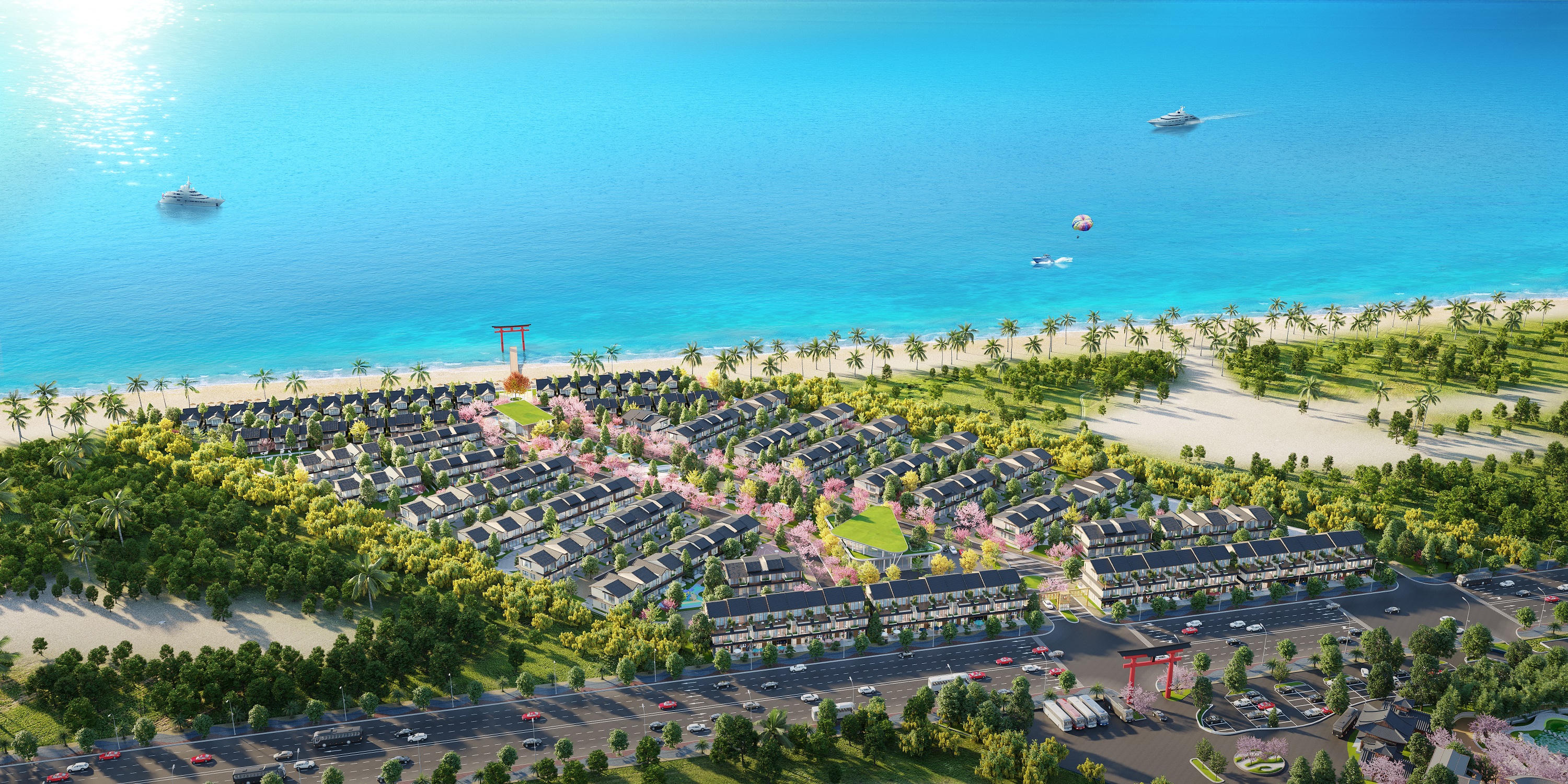 Cảnh quan phân kỳ được sắp xếp để khơi mở những hành trình khám phá – trải nghiệm theo những chủ đề thiên nhiên, lịch sử, văn hoá, địa lý khác nhau của đất nước mặt trời mọc, bằng những nét chấm phá độc đáo: hình ảnh mô phỏng cổng chào Torii trên biển, vườn trúc, hồ cá Koi, đường hoa anh đào…