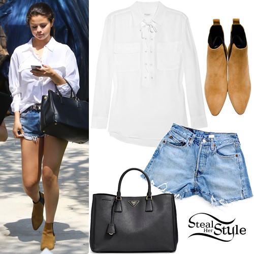 Các trang phục denim từ áo sơ mi, áo khoác cho đến quần jeans, shorts... đều được Selena Gomez mix một cách ấn tượng mỗi khi dạo phố.