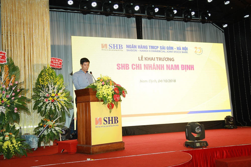 Phát biểu tại buổi lễ, Tổng giám đốc SHB – ông Nguyễn Văn Lê chia sẻ: “Với tiềm năng phát triển, sự hỗ trợ tích cực của UBND tỉnh, NHNN tỉnh, các Sở ban ngành các cấp và đặc biệt là sự tín nhiệm của khách hàng là cộng đồng các doanh nghiệp, doanh nhân, cá nhân trên địa bàn tỉnh, SHB Nam Định sẽ hoạt động ngày càng phát triển vững mạnh, cùng hệ thống ngân hàng thương mại trên địa bàn đóng góp vào phát triển kinh tế xã hội của tỉnh Nam Định.”
