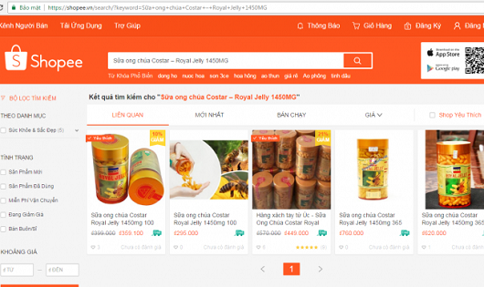 (PLO) - Shopee.vn ngang nhiên vi phạm các quy định về quảng cáo sản phẩm thực phẩm bảo vệ sức khỏe Sữa ong chúa Costar – Royal Jelly 1450MG và Sụn cá mập Costar shark cartilage.