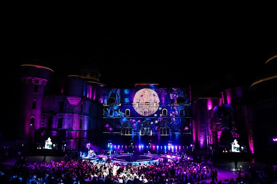 Ngoài sử dụng dàn máy chiếu cực đại (mapping) chiếu lên tường của Lâu đài Ánh Trăng với muôn vàn hình ảnh lộng lẫy, đêm nhạc còn sử dụng pháo hoa tầm thấp khiến không gian Quảng trường Ánh Trăng trở nên kì ảo và đầy mê hoặc, hệt như một lâu đài đang bước ra từ cổ tích.