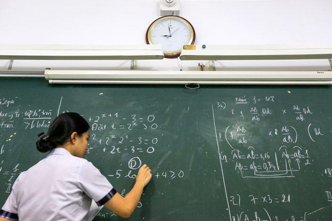 Học sinh trường THCS-THPT Trần Cao Vân (cơ sở quận Gò Vấp, TP HCM) trong giờ ôn tập Toán. Ảnh:Quỳnh Trần |