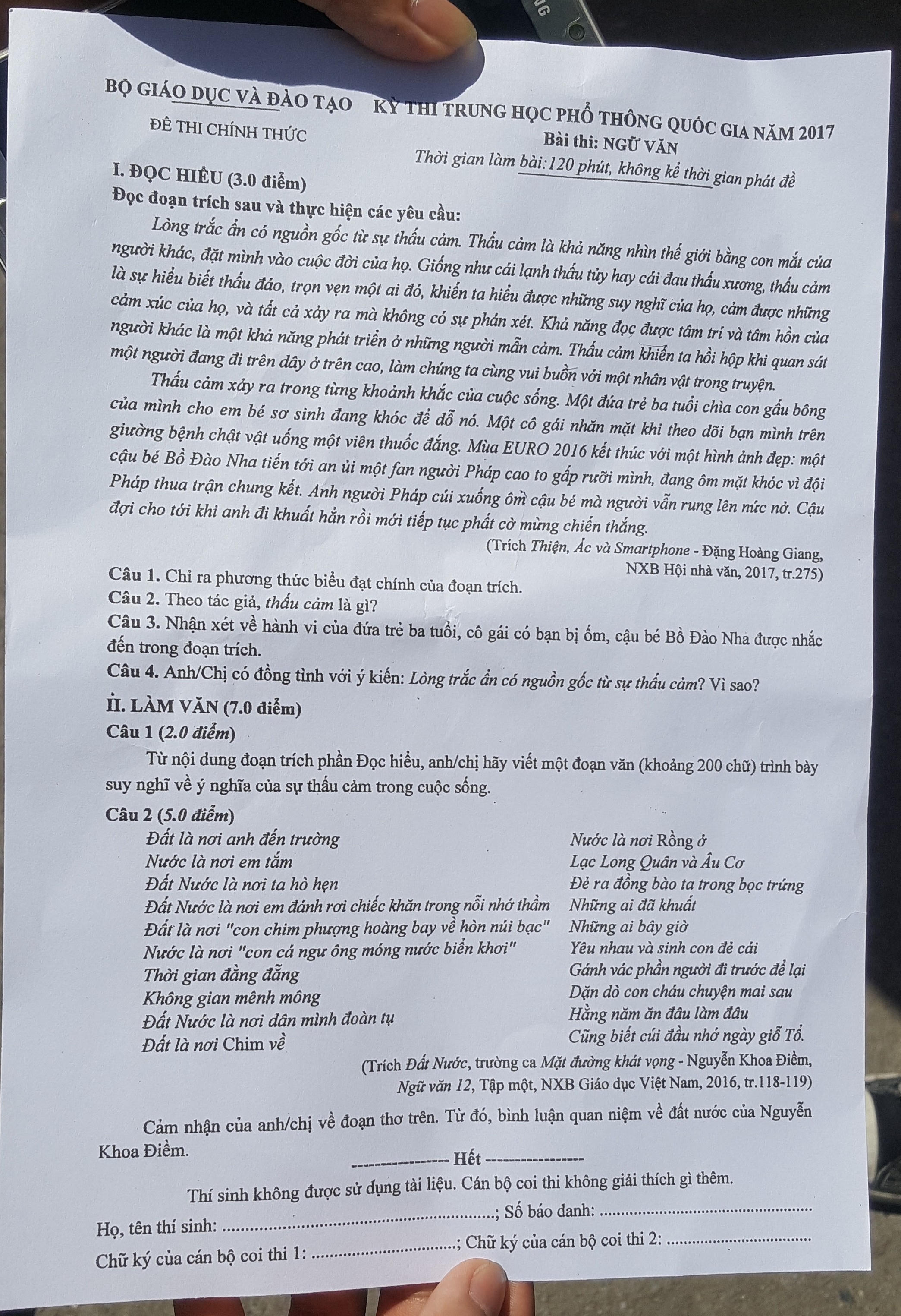 Sĩ tử hào hứng với đề thi môn Ngữ văn về lòng trắc ẩn