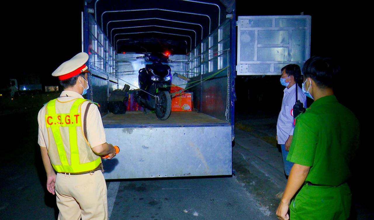 Tuy nhiên, qua kiểm tra phương tiện, lực lượng chức năng phát hiện phía sau thùng xe tải ngoài các loại rau củ quả như giấy đăng ký “luồng xanh”, còn 1 xe gắn máy có dấu hiệu nghi vấn, nên tiến hành mời tài xế Trần Văn Hải và 2 người cùng ngồi trên xe để tiến hành làm việc.