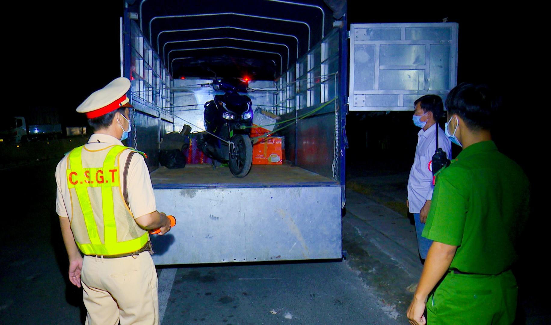Một xe tải lợi dụng “luồng xanh” chở người và xe máy từ Bình Dương về Bạc Liêu bị lực lượng chức năng phát hiện và ngăn chặn. |