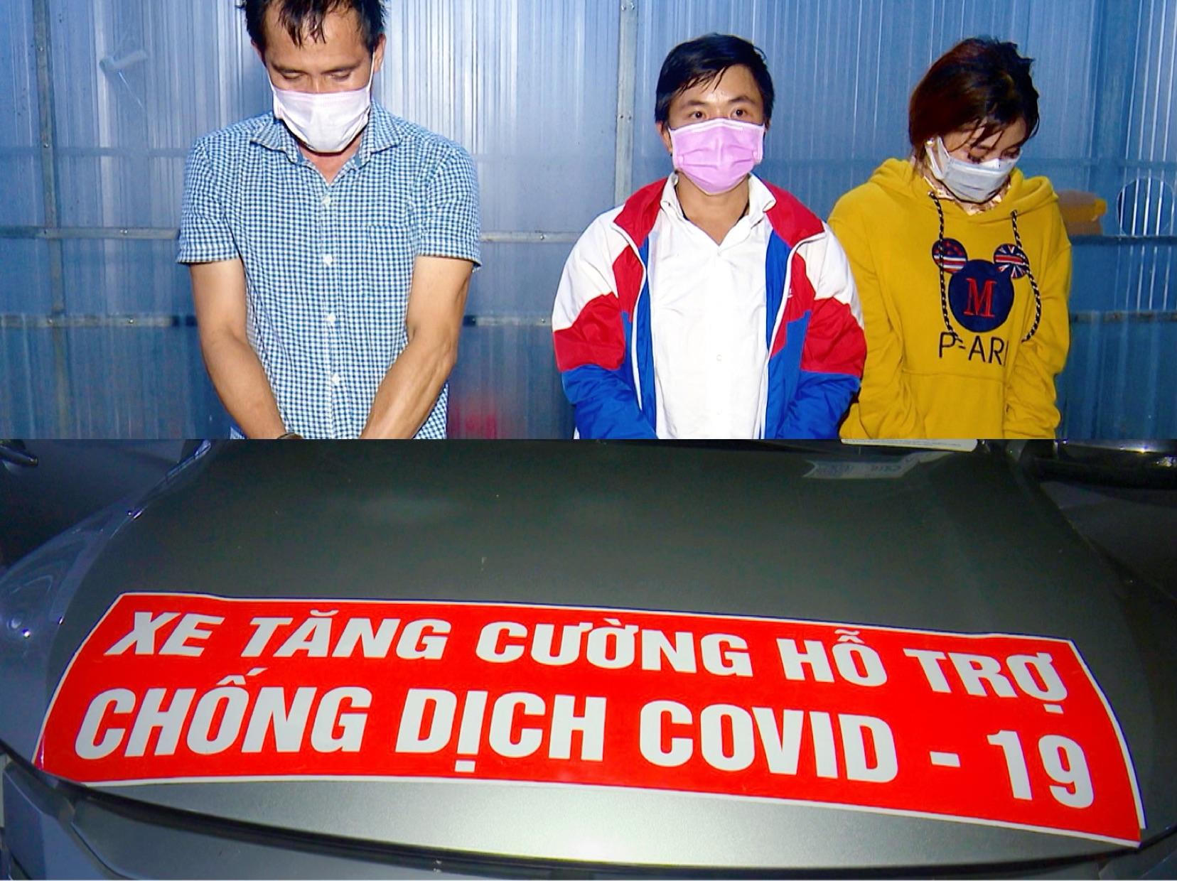 Lực lượng chức năng lập biên bản tài xế Trần Ngọc Trang về hành vi lợi dụng xe “luồng xanh” để chở người từ vùng dịch về địa phương. |