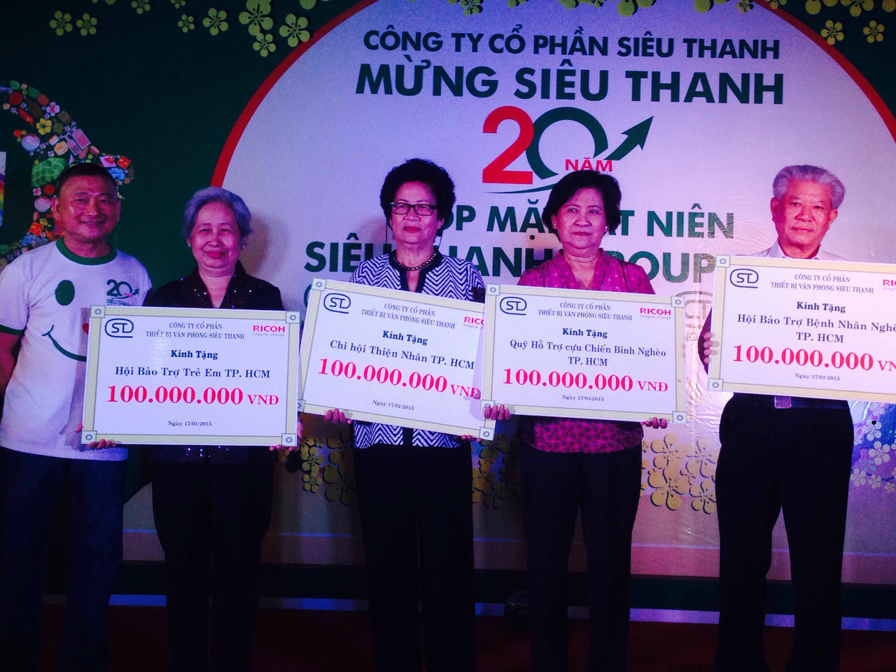 Nhân dịp này, Công ty đã quyết định trao tặng 400 triệu cho 4 đơn vị từ thiện đã gắn bó với chúng tôi trên hành trình làm từ thiện trong nhiều năm qua : Hội bảo trợ bệnh nhân nghèo TPHCM, Chi Hội Thiện Nhân, Quỹ hỗ trợ Cựu Chiến Binh Nghèo TP HCM, Hội bảo trợ Trẻ Em TP HCM, mỗi đơn vị 100 triệu đồng.