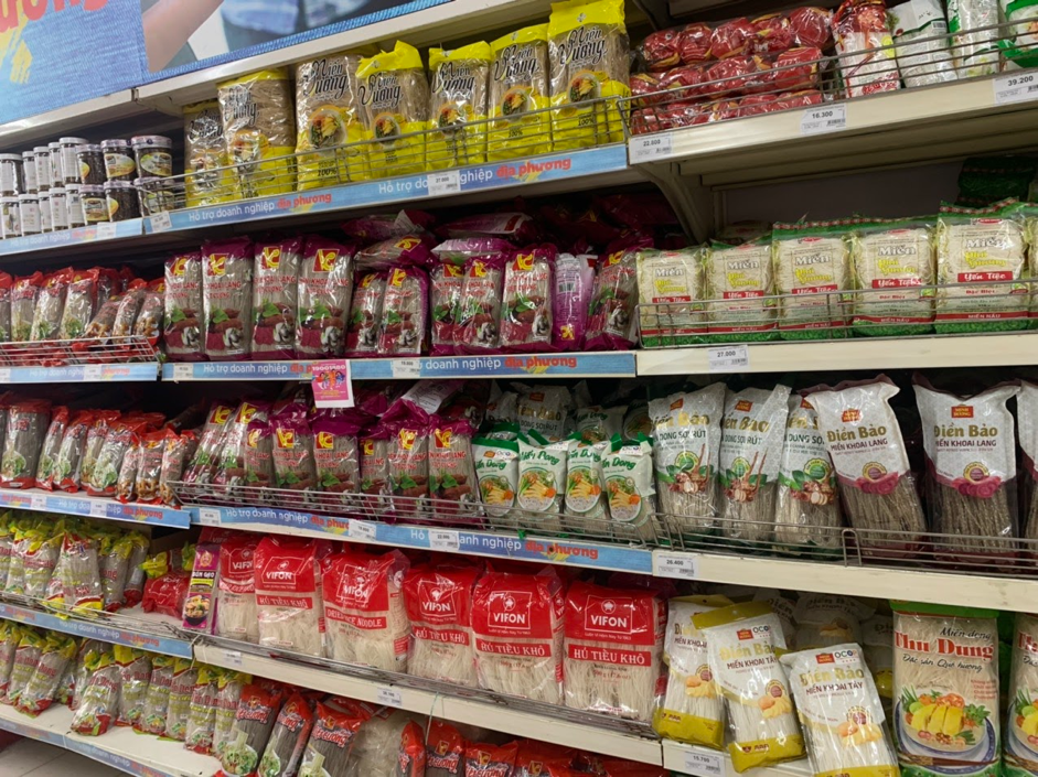 Các mặt hàng đồ khô khác đầy đủ trên kệ. |
