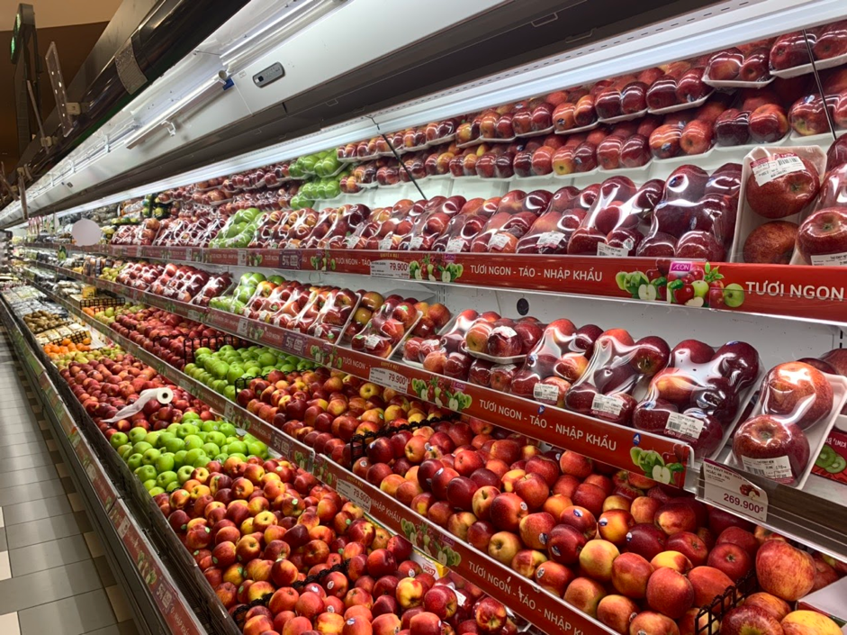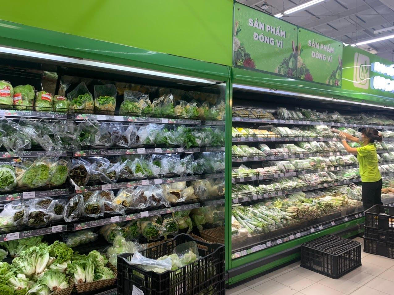 Tại 2 siêu thị lớn ở Hà Nội, các mặt hàng nhu yếu phẩm như gạo, rau, củ, quả... được nhân viên thường trực xếp lên kệ thường xuyên. Các mặt hàng đa dạng dồi dào, nhưng giá cả vẫn ổn định, gần như không có sự điều chỉnh tăng.