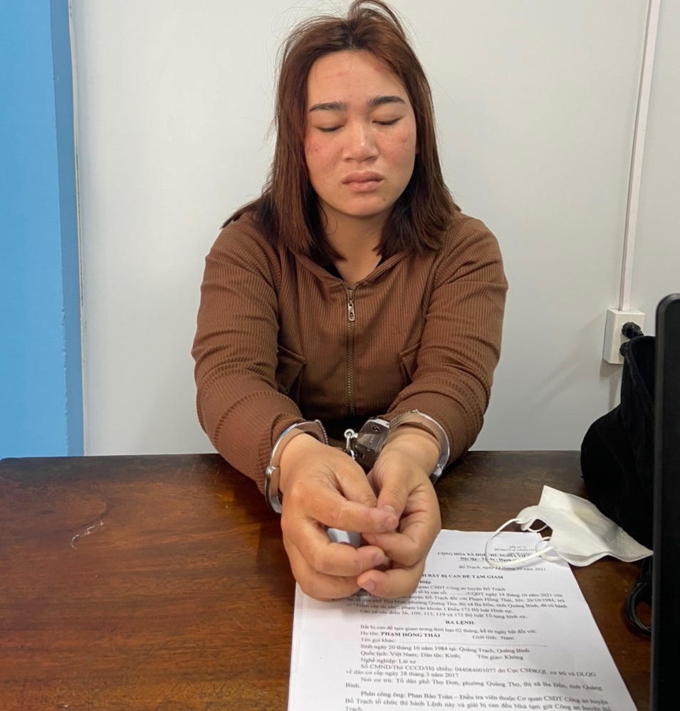 Đối tượng Nguyễn Thị Quý tại cơ quan Công an huyện Bố Trạch. |