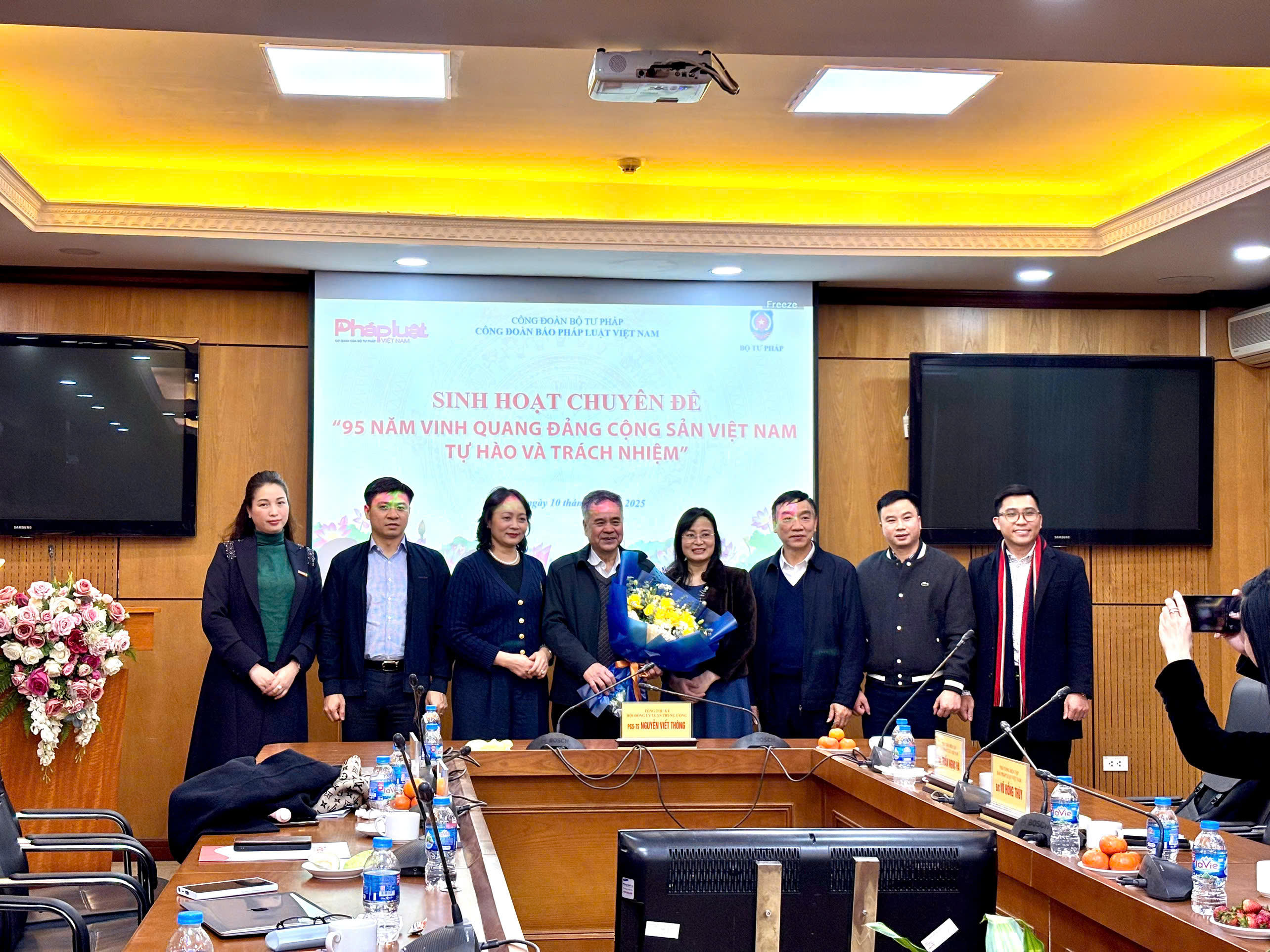 (PLVN) - Chiều 10/2, Công đoàn Báo Pháp luật Việt Nam tổ chức buổi Sinh hoạt chuyên đề “95 năm vinh quang Đảng Cộng sản Việt Nam, tự hào và trách nhiệm”. PGS.TS Nguyễn Viết Thông, Nguyên Phó trưởng Ban Tư tưởng - Văn hoá Trung ương, Nguyên Tổng Thư ký Hội đồng lý luận Trung ương đã truyền đạt thông tin chuyên đề.