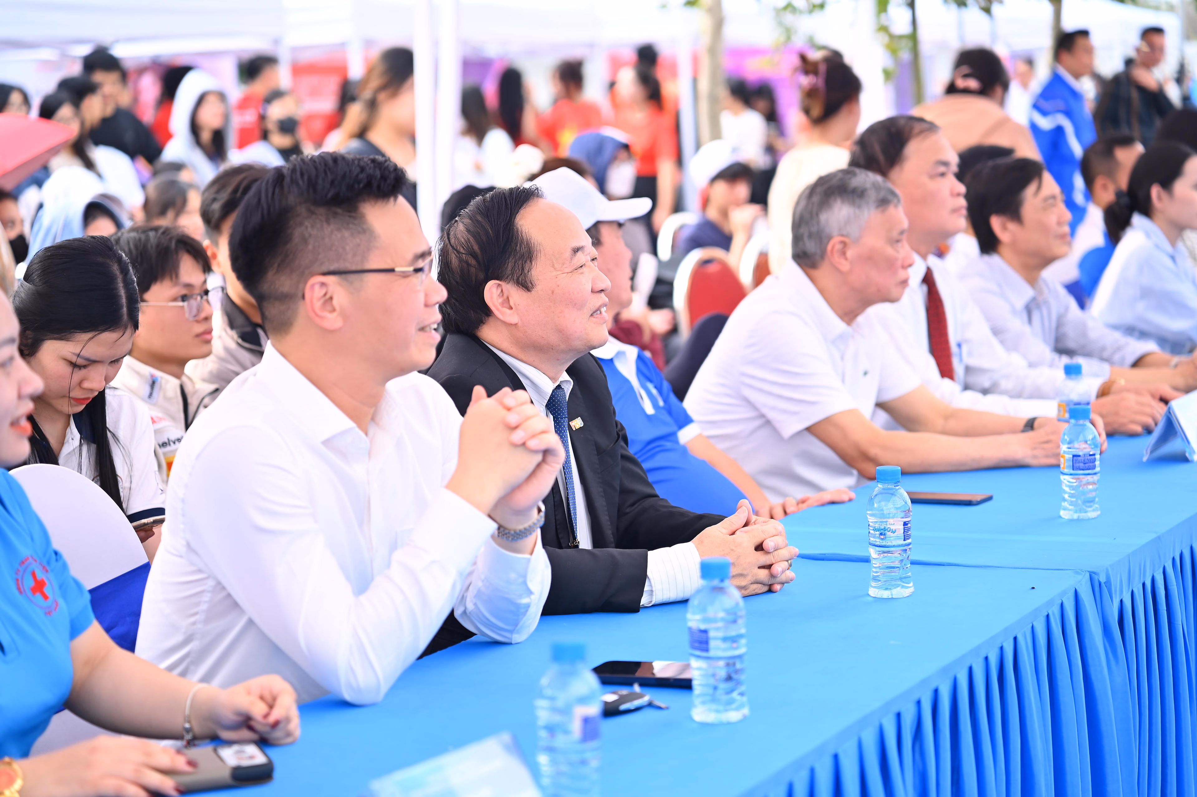 Tham dự chương trình, về phía lãnh đạo Nhà trường có PGS.TS. Phạm Ngọc Ánh – Hiệu trưởng, PGS.TS. Trần Duy Kiều – Phó Hiệu trưởng, Trưởng Ban tổ chức, cùng đại diện các phòng, ban chức năng, giảng viên và cán bộ Nhà trường.