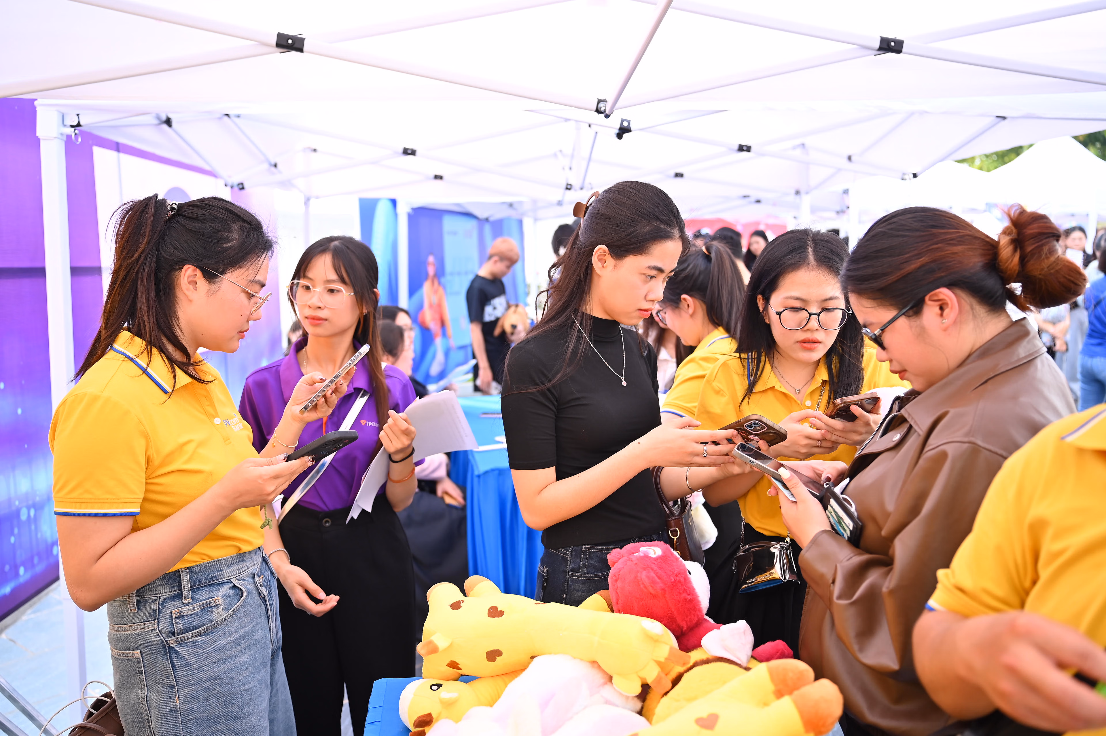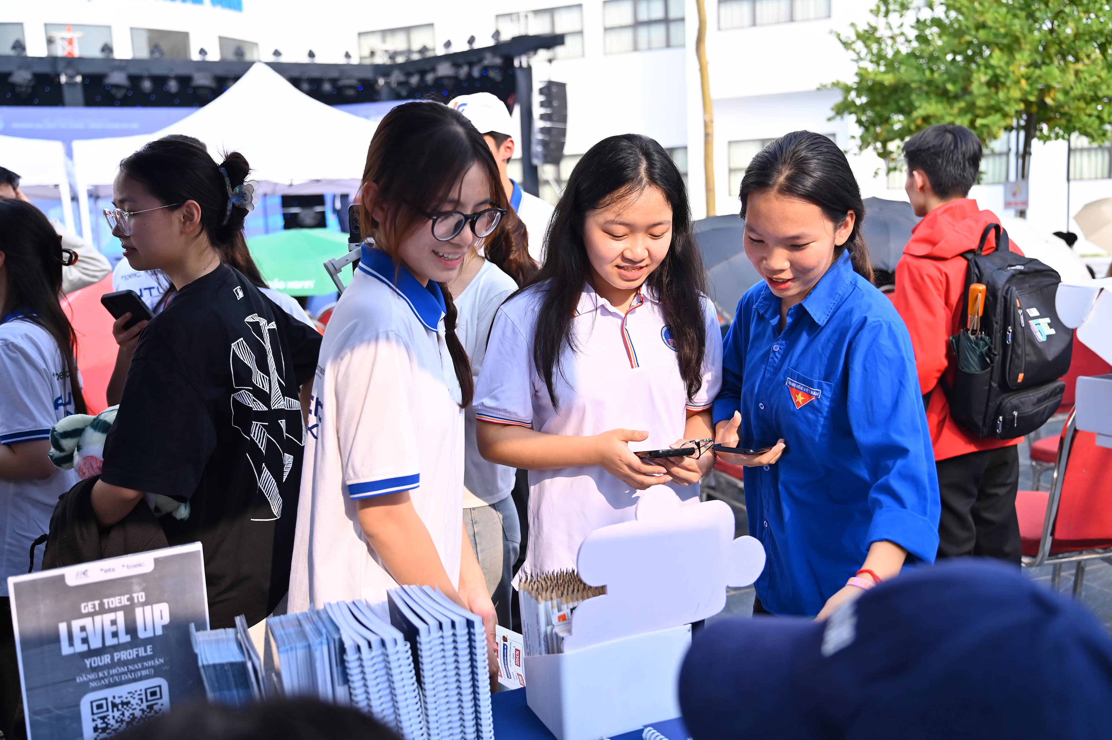 Ngay từ đầu giờ chiều, khuôn viên Trường Đại học Tài chính – Ngân hàng Hà Nội đã trở nên sôi động với sự hiện diện đông đảo của sinh viên các khóa. Nhiều sinh viên chủ động chuẩn bị hồ sơ, CV, trực tiếp tiếp cận các gian hàng tuyển dụng để tìm kiếm cơ hội thực tập, việc làm phù hợp với chuyên ngành đào tạo.