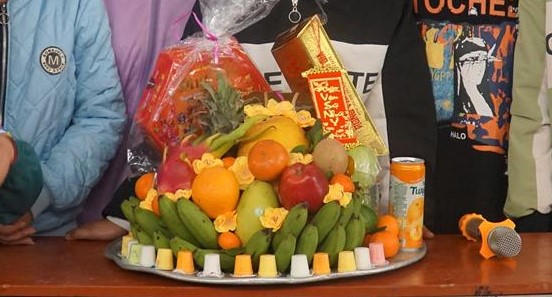 5 thành viên nhóm Cầu vồng và 6 tình nguyện viên là sinh viên các trường ĐH trên địa bàn thành phố Hà Nội đã tổ chức hàng loạt các hoạt động vui chơi và mang đến cho các em một bầu không khí xuân ấm áp, rộn ràng. Tham gia cuộc thi trang trí mâm ngũ quả ngày Tết, không những mang đến cho các em không khí tết truyền thống, giữ gìn bản sắc dân tộc, khơi dậy những giá trị tốt đẹp mà còn tạo môi trường vui chơi, trải nghiệm cho các em. Với sự khéo léo và sáng tạo, từ những loại quả thông thường, các em đã tạo ra mâm ngũ quả ấn tượng, những loại quả được lựa chọn mang đúng ý nghĩa biểu trưng cho trời đất, vạn vật giao hòa, cho những mong ước tốt đẹp về năm mới an khang, thịnh vượng.“Đây là hoạt động em thích nhất” – em H.M., nhà Hoa Mai đã chia sẻ trong niềm hân hoan sau cả ngày trải nghiệm.