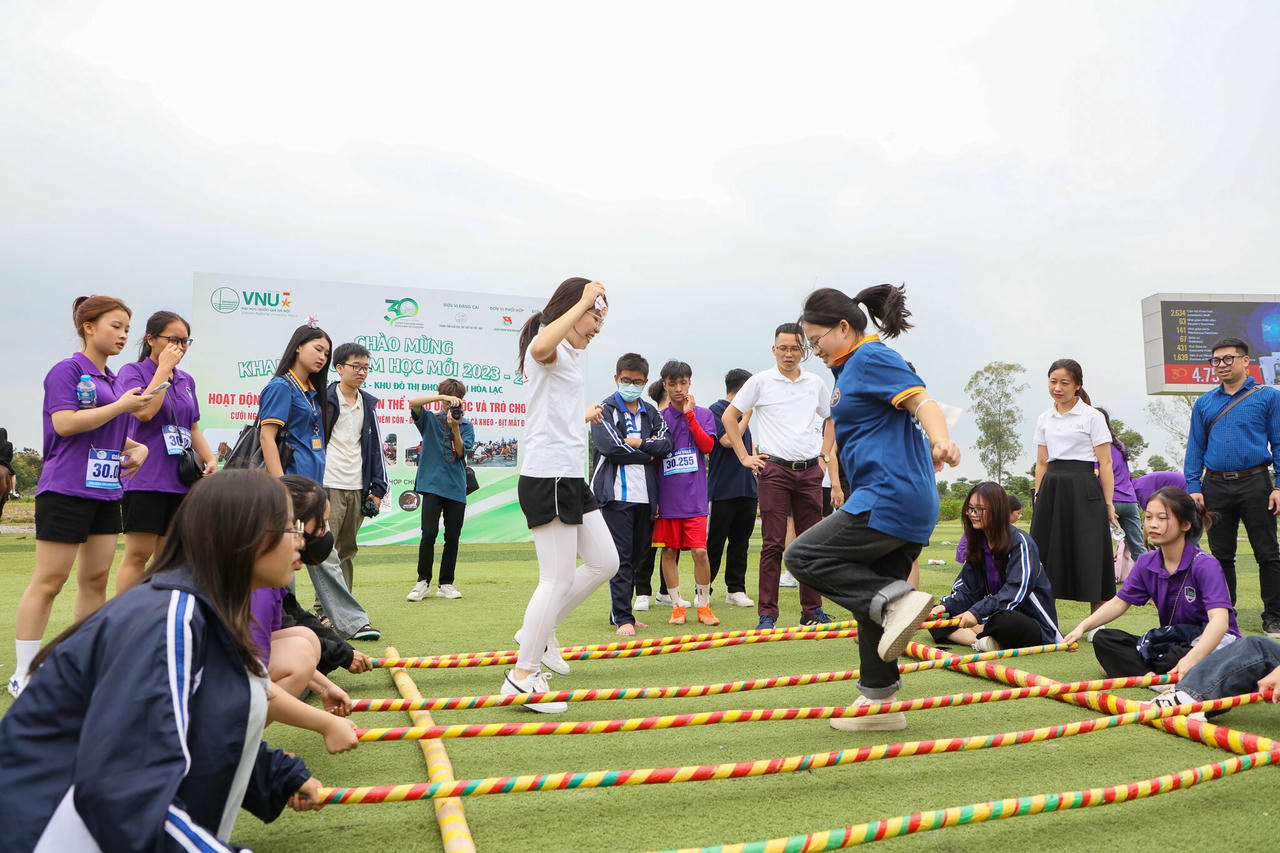 Trong đó đáng chú ý là sinh viên được tham gia trải nghiệm hàng loạt trò chơi dân gian như cưỡi ngựa, bắn cung, nhảy sạp, múa xoè, đẩy gậy, đi cà kheo, ném còn, bịt mắt đánh trống...