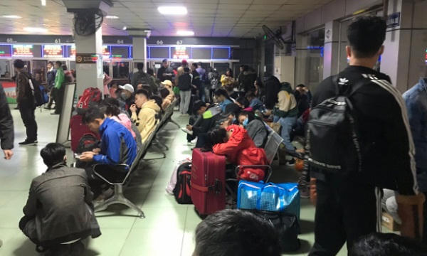 Nguyễn Thị Lan Anh, nữ sinh viên trường Đại Học Thương Mại đoán trước chiều nay sẽ rất đông người về, nên đã xin cô giáo cho nghỉ sớm 1 tiết để ra bắt xe. "Thế mà vẫn không bắt được xe, nhà xe toàn xua tay ra hiệu đã quá tải không đón thêm khách nữa”, Lan Anh cho biết.