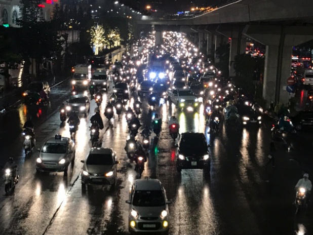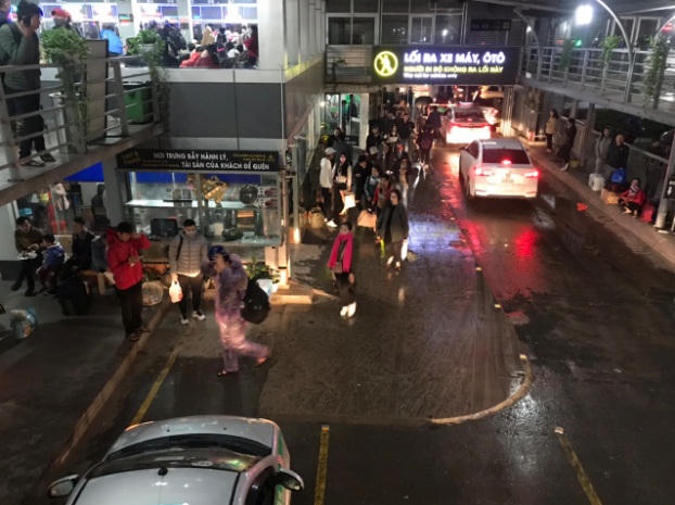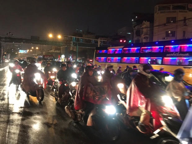 Nhiệt độ Hà Nội lúc 19h là 13 độ C, rét kèm theo mưa nhỏ càng làm không khí lạnh buốt hơn. Tuy nhiên, dù tối muộn, dòng người dồn đến các bến xe vẫn khá đông. Ai cũng hy vọng kịp về quê trong đêm.
